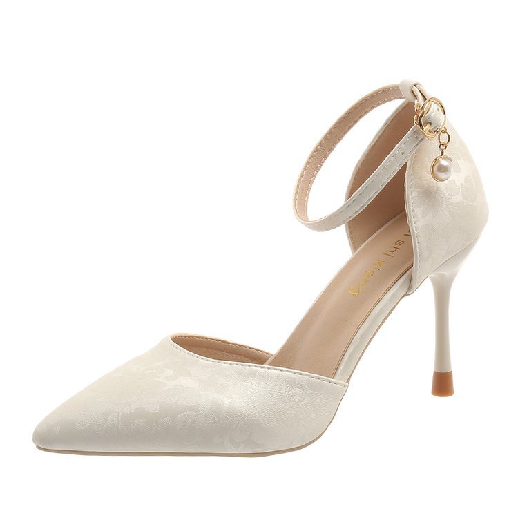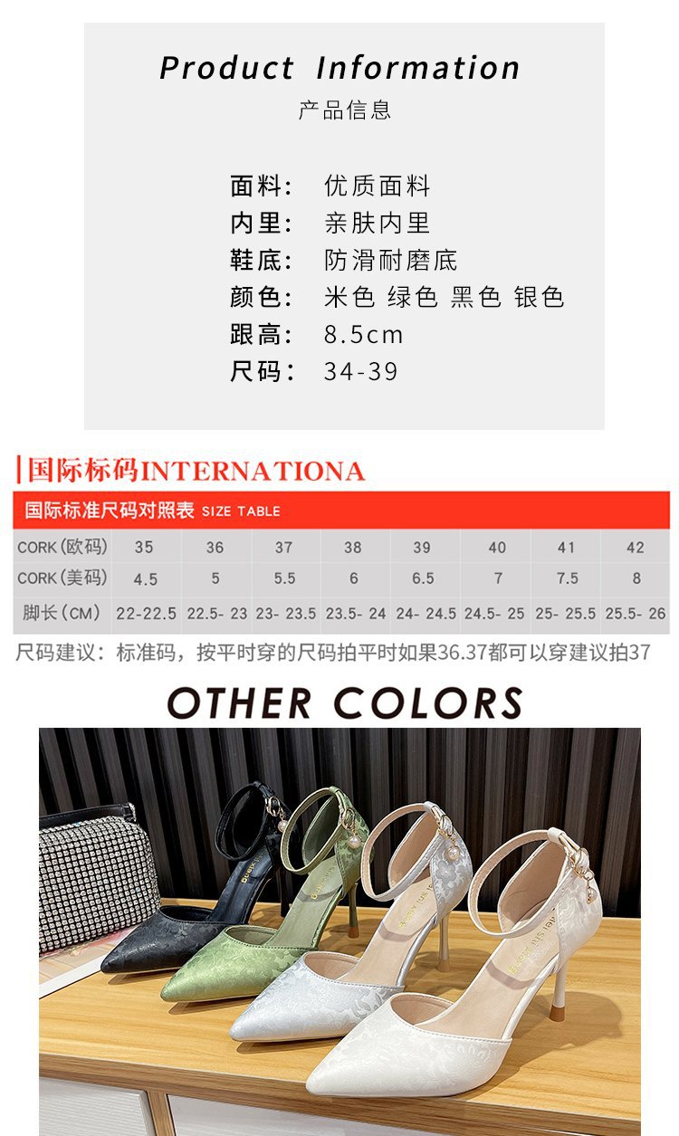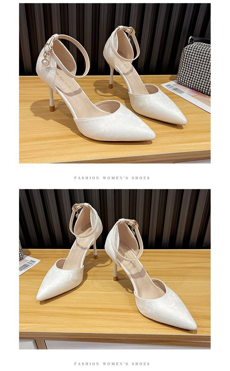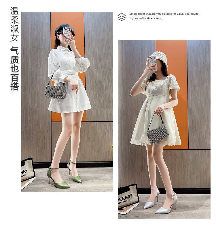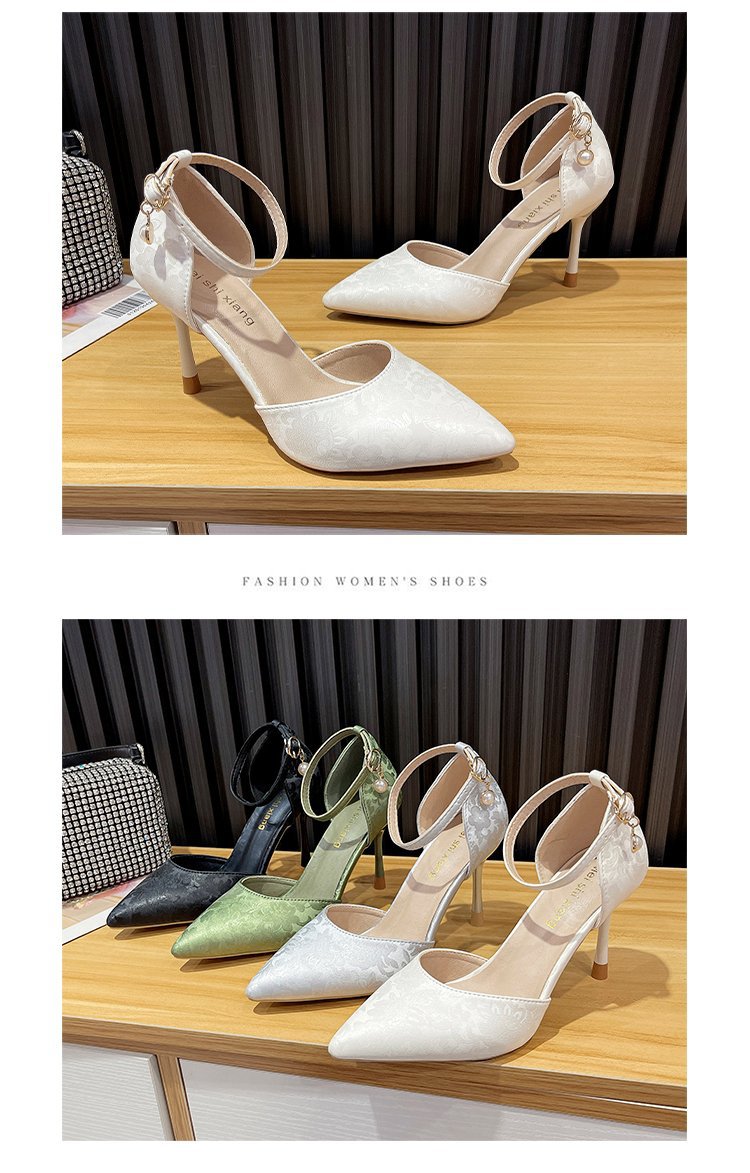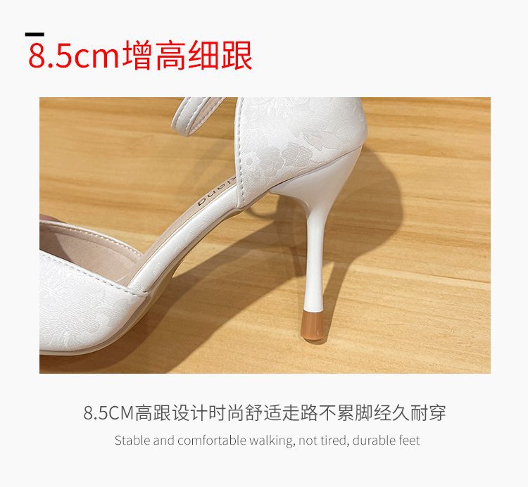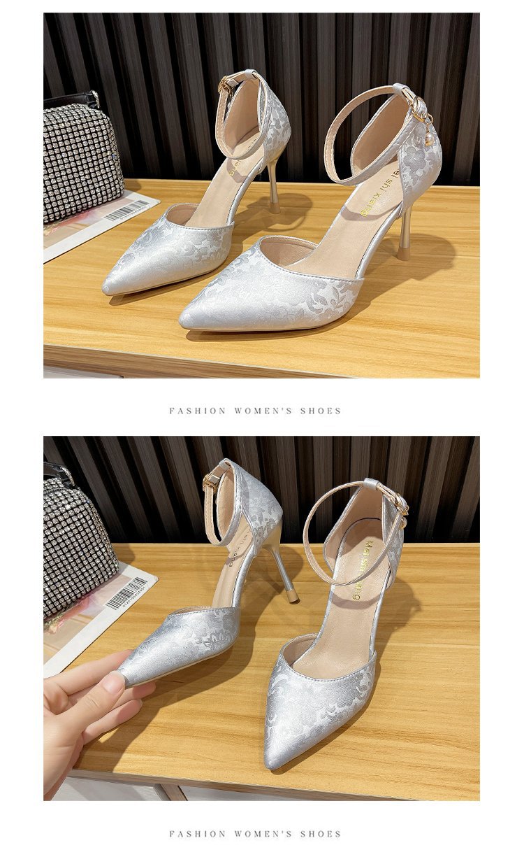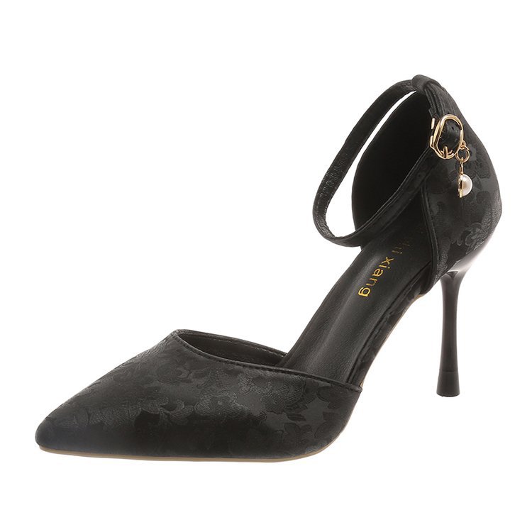 2024 여름 새로운 국가 스타일 중공 단일 레이어 신발 한 단어 버클 뾰족한 스틸레토 힐 하이힐 스커트 여성 신발 도매스토어 가기