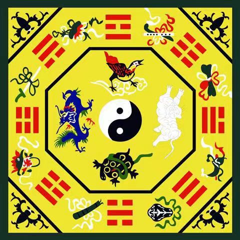 도교 갱 담요 음과 양 태치 여덟 다이어그램 카펫 선천성 및 획득 한 풍수 오픈 루미 도교 명상 로터스 매트