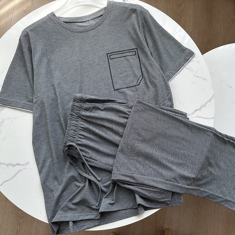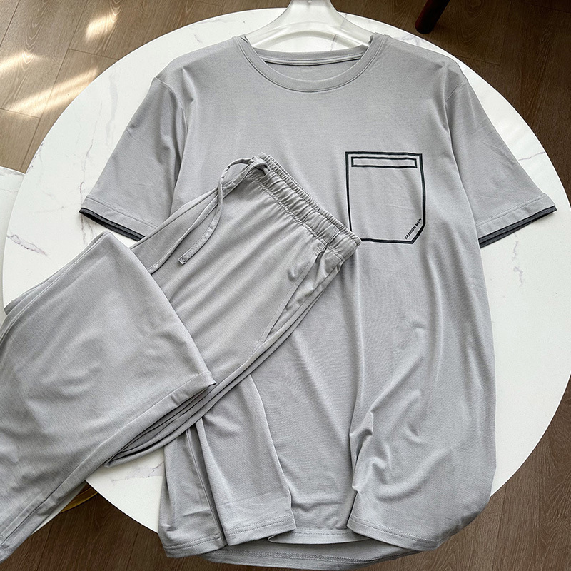 모달 인쇄 반팔 바지 남성용 홈 의류 세트 크루 넥 풀오버 느슨한 부드러운 탄성 외형 잠옷