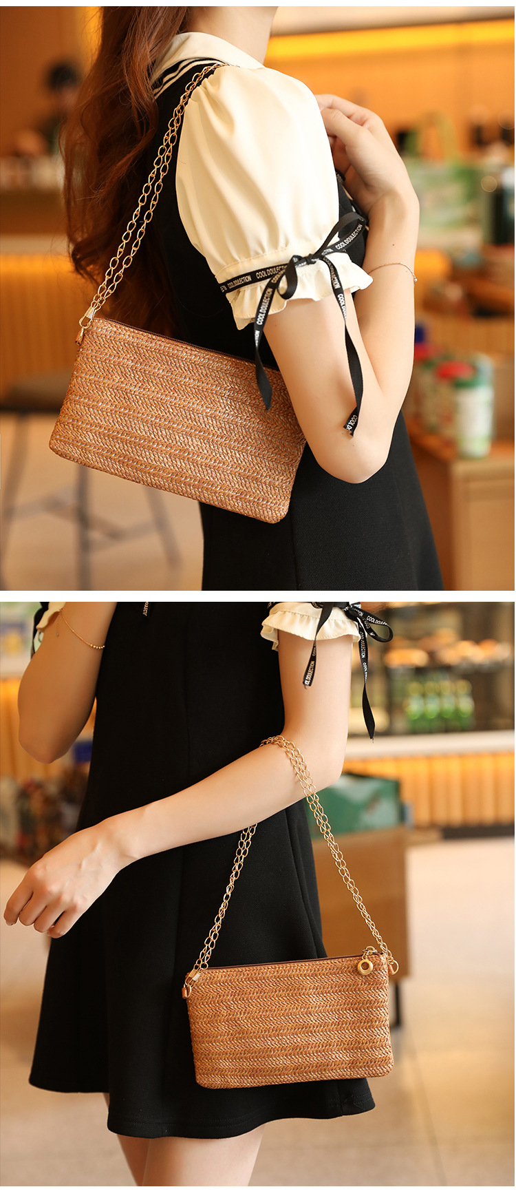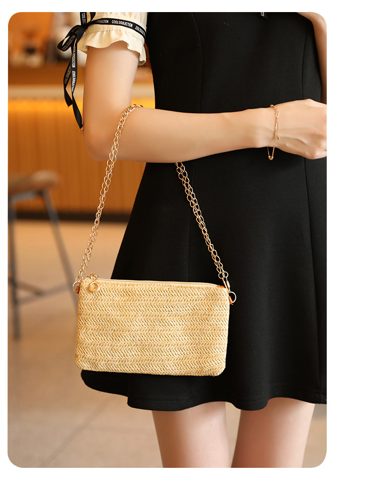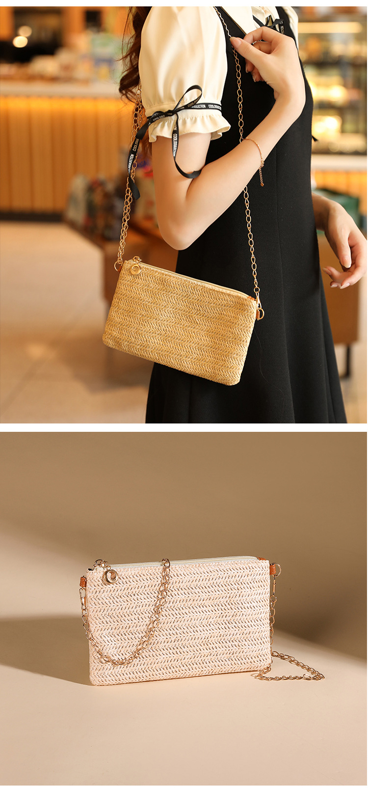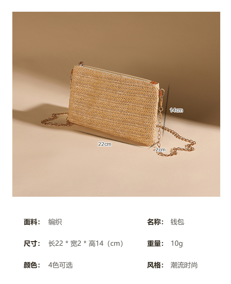 跨境专供,shein,temu等夏季热销草编元素链条极简草编小方包
