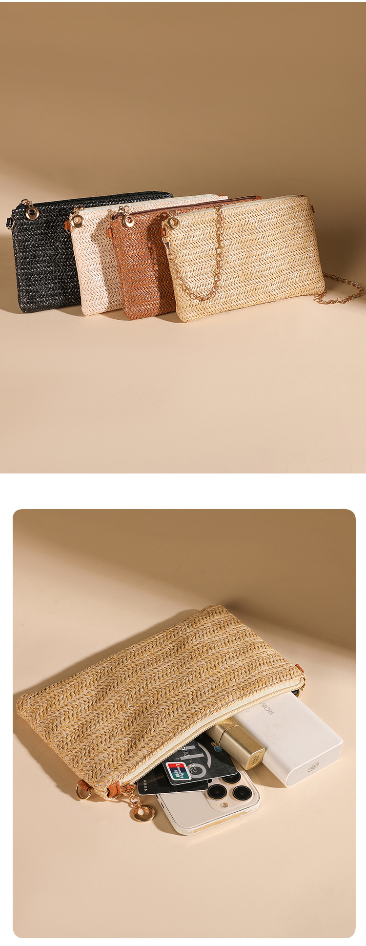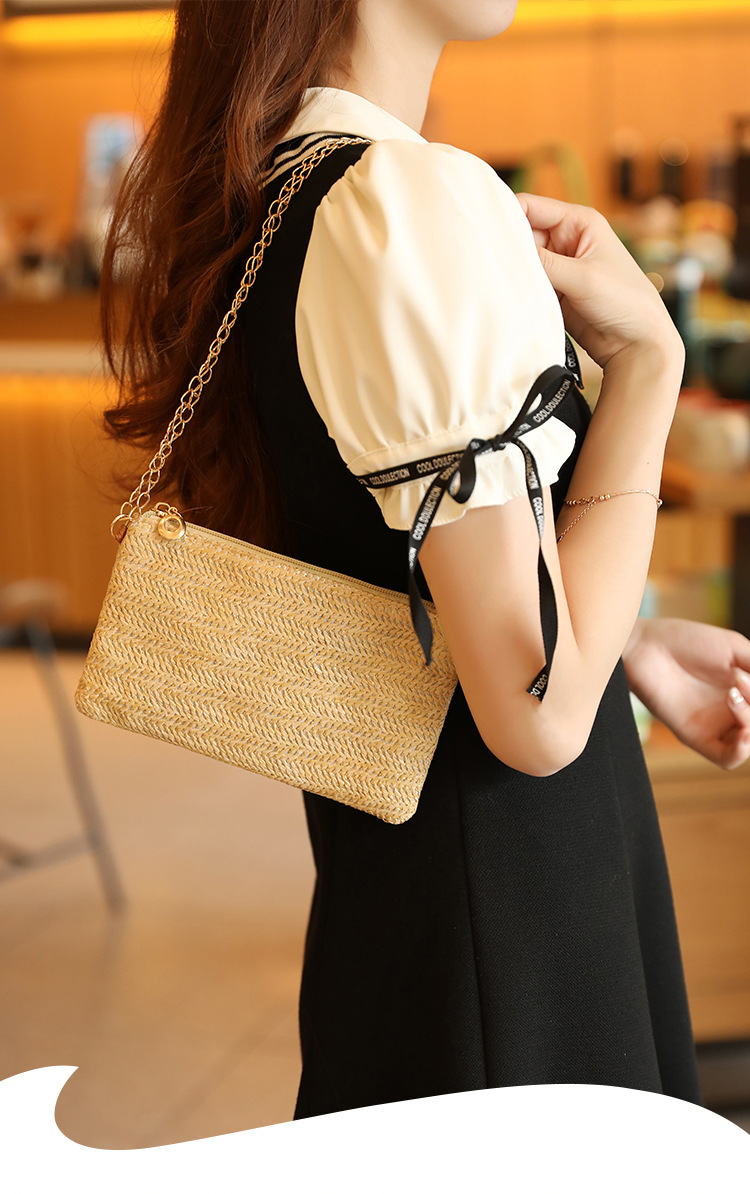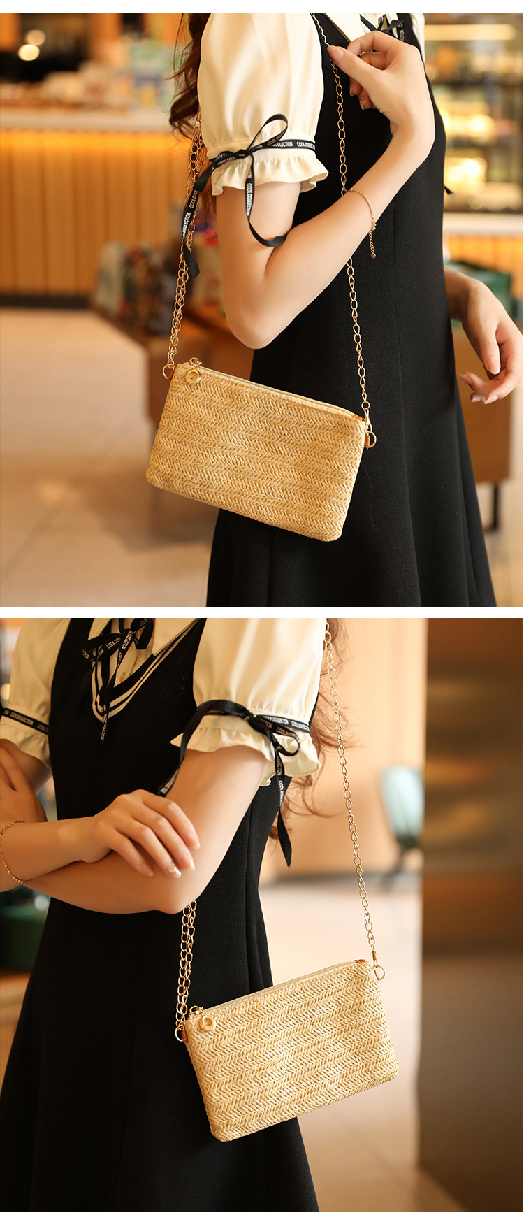 跨境专供,shein,temu等夏季热销草编元素链条极简草编小方包