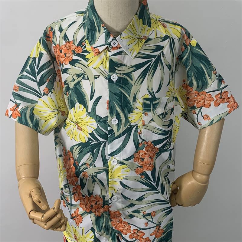 남학생과 여자를위한 발리 타이 스타일 꽃 셔츠 반소매 비치 휴가 어린이 꽃 셔츠 반소매 원피스