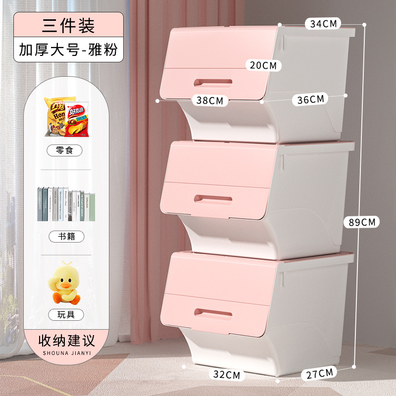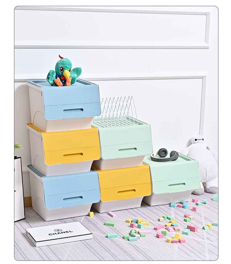전면 개방형 수납함 대형 가정용 어린이 장난감 측면 개방형 수납함 옷 간식 플라스틱 정리함