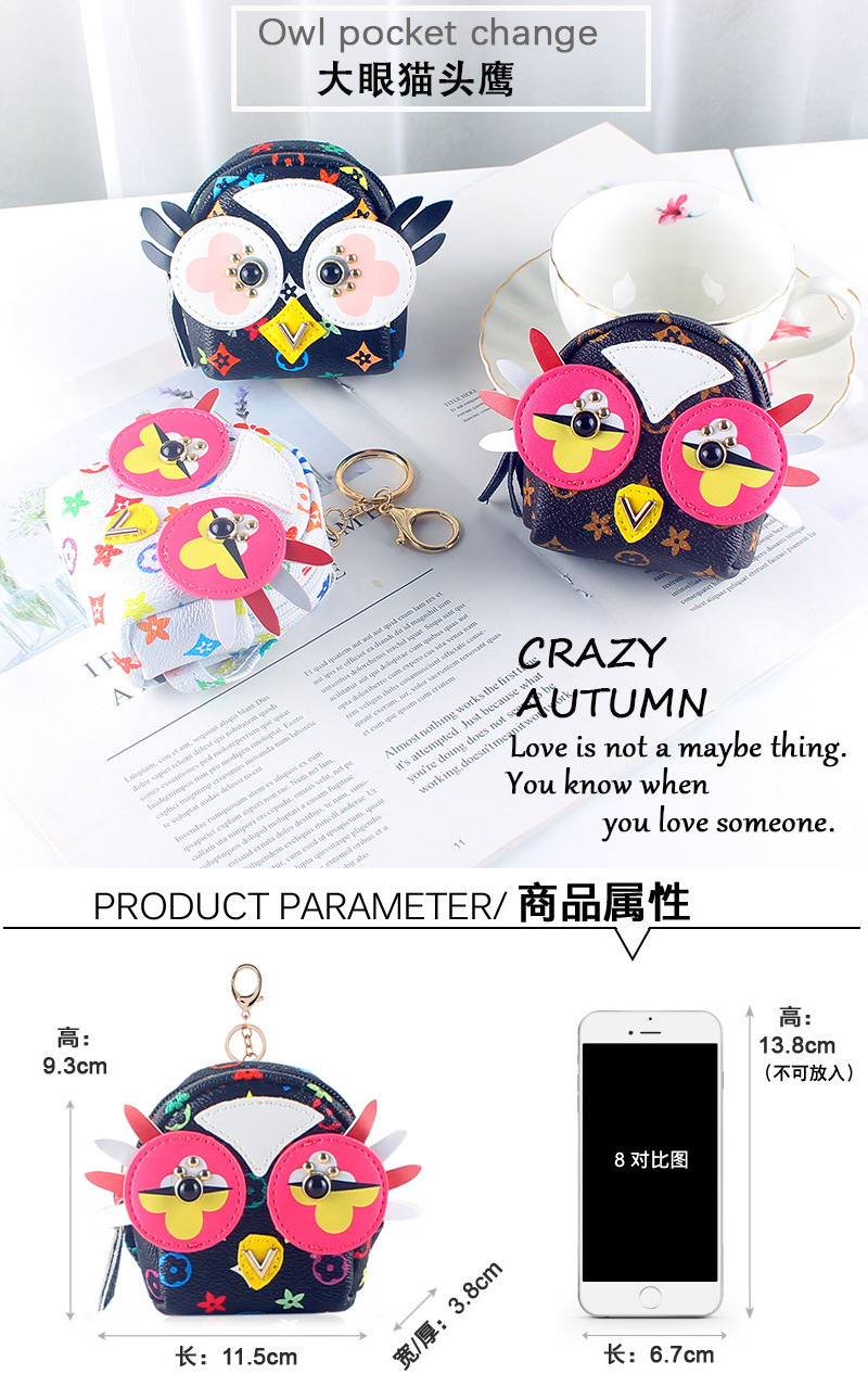 올빼미 크리 에이 티브 동전 지갑 작은 학교 가방 스타일 키 체인 통합 펜던트 작은 가방 헤드폰 데이터 케이블 보관 가방