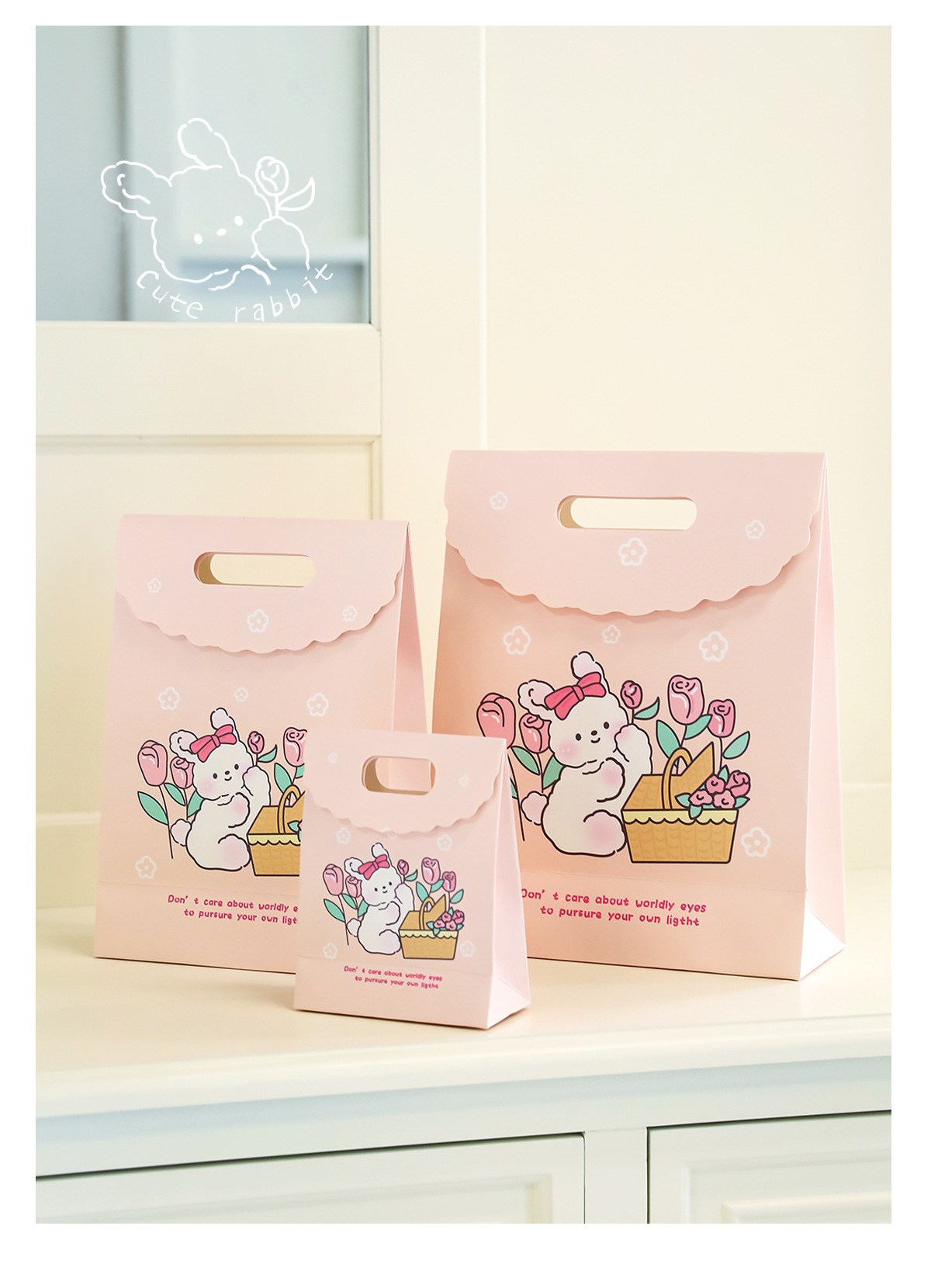 만화 선물 포장 가방 어린이날 종이 가방 귀여운 토끼 손잡이 종이 가방 생일 답례 선물 가방