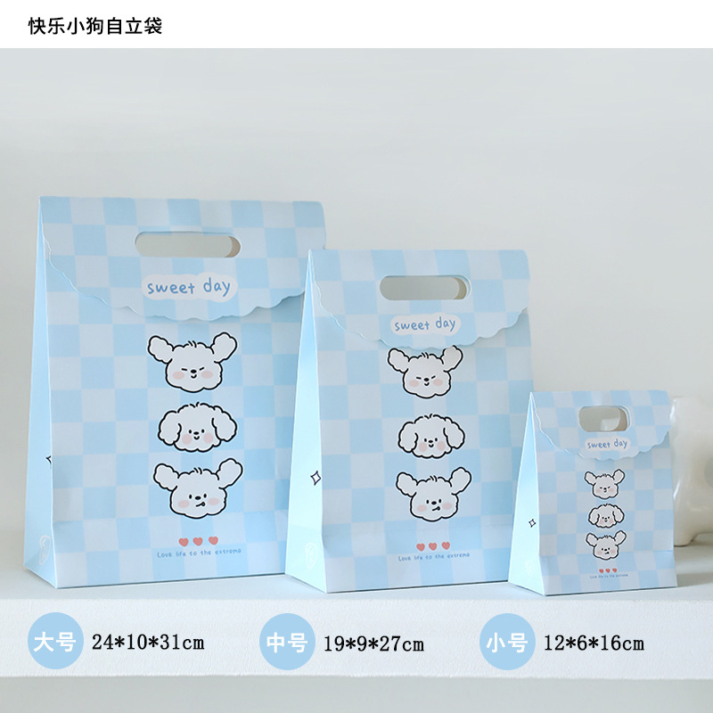 • 행복한 강아지-자기 서 가방; 흰색 판지; 대형 24*10*31cm