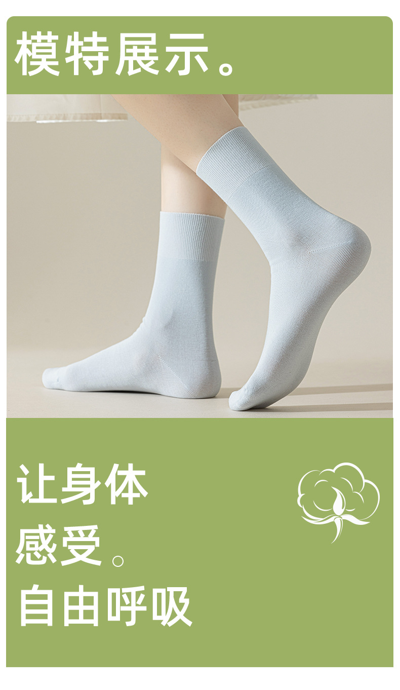 주지 양말 여성용 봄 가을 얇은 중목 양말 단색 순면 통기성 땀 흡수 방취 다용도 롱 양말 도매