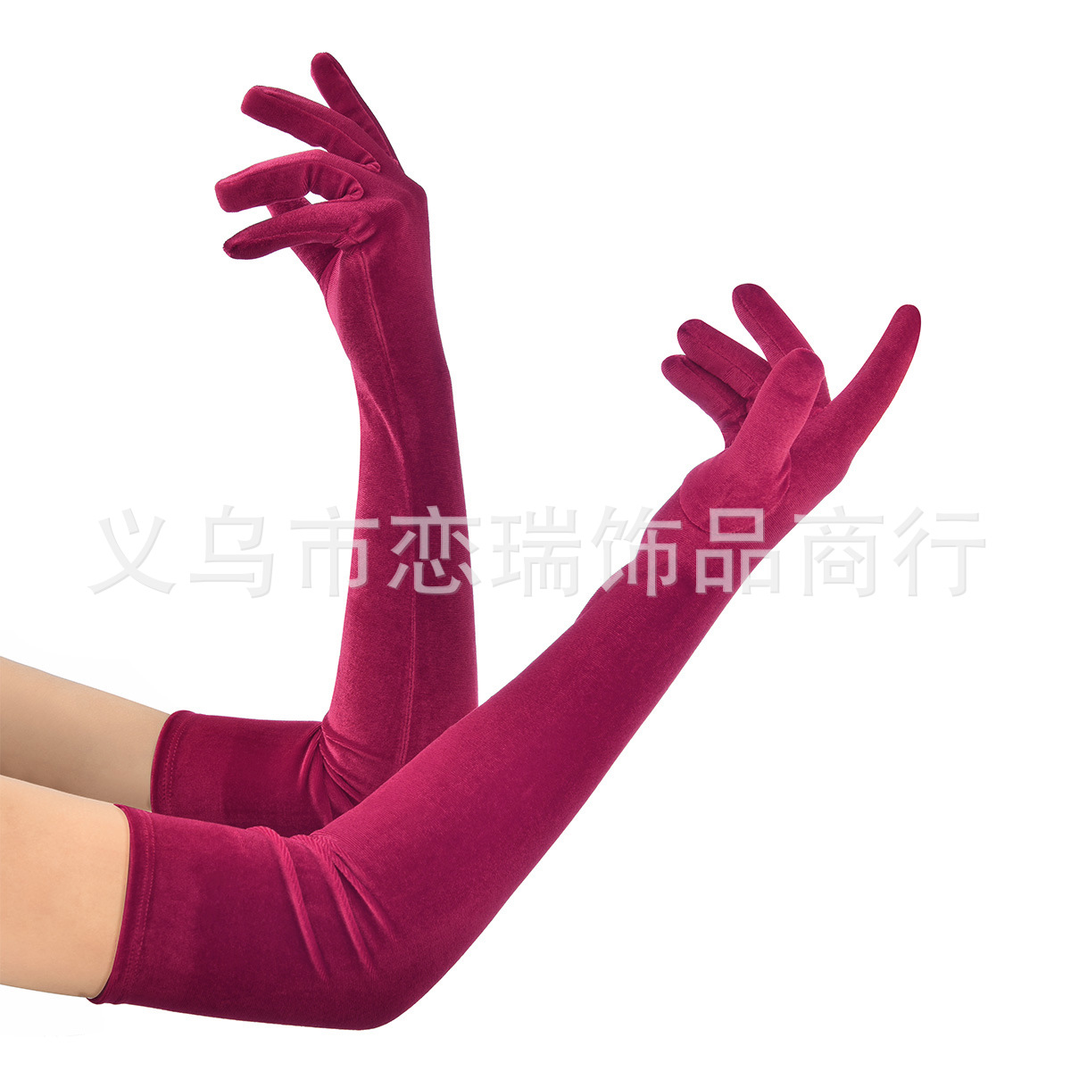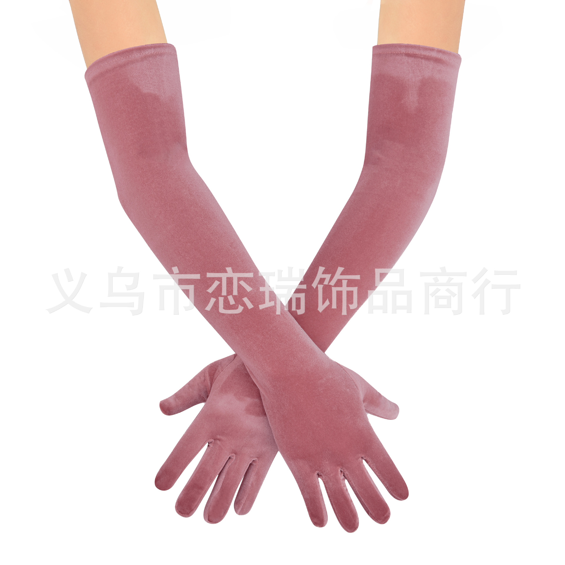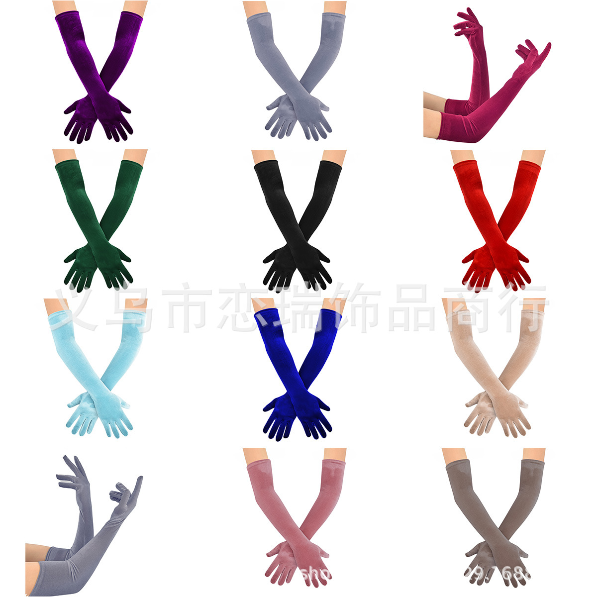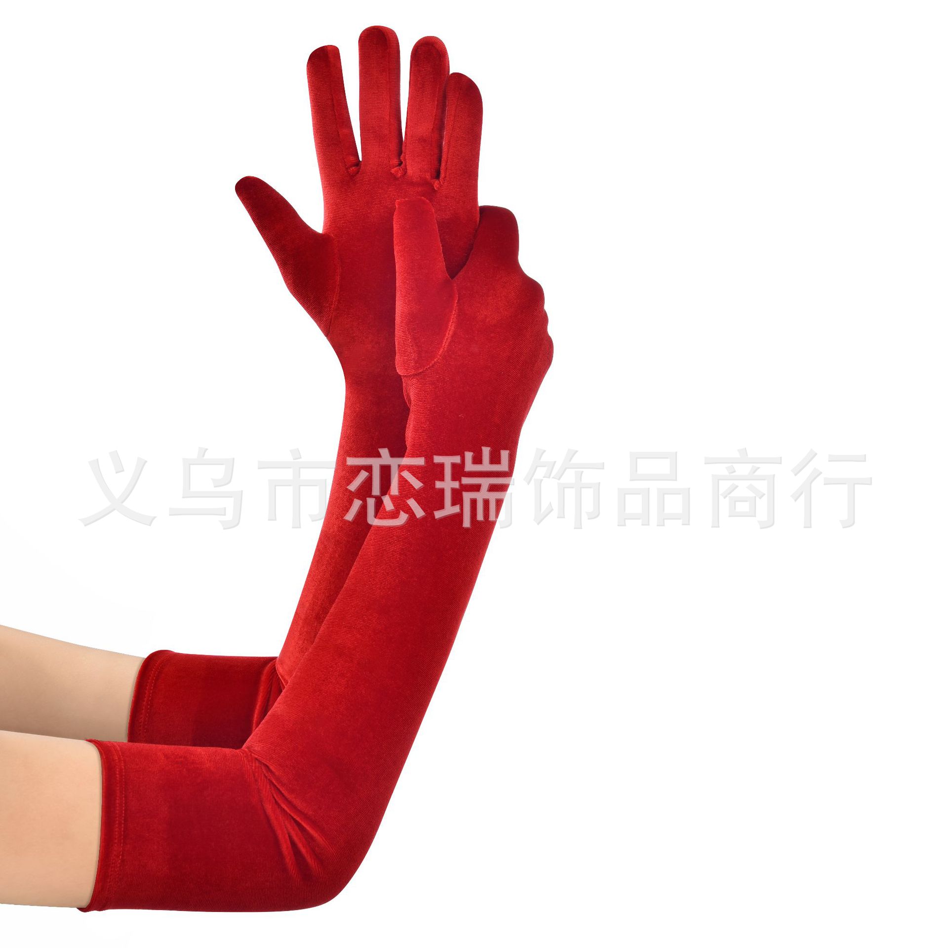 1920s复古节日晚会舞会派对宴会长款丝绒植绒手套晚礼服服饰配饰