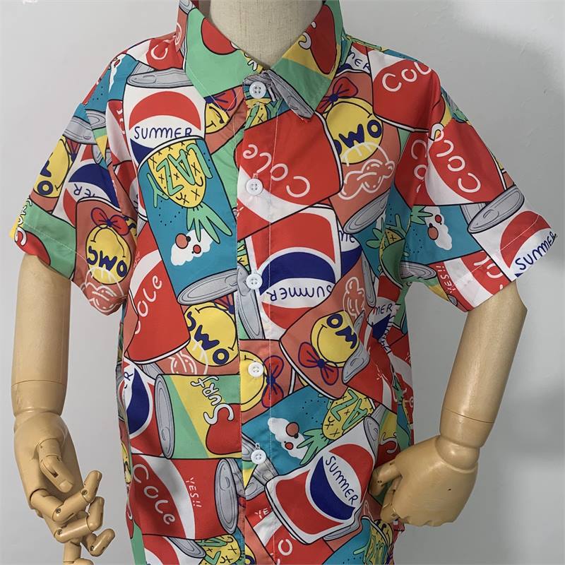 휴일 메이 데이 비치 바람 꽃 셔츠 해변 가족 원피스 사진 짧은 소매 캐주얼 탑 소년 소녀 싼야, 하이난스토어 가기