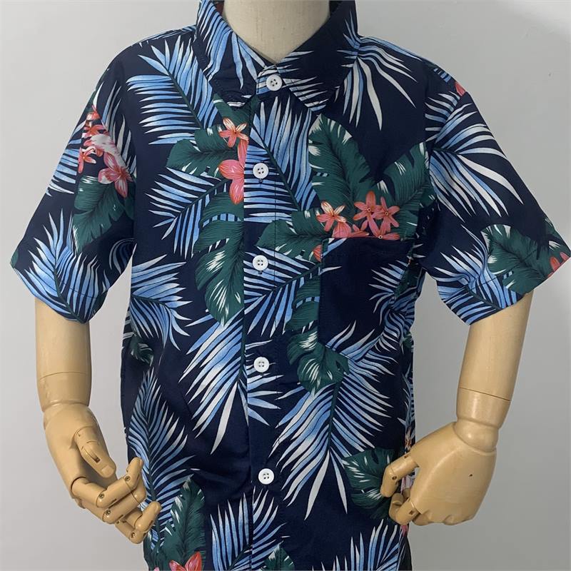 휴일 메이 데이 비치 바람 꽃 셔츠 해변 가족 원피스 사진 짧은 소매 캐주얼 탑 소년 소녀 싼야, 하이난