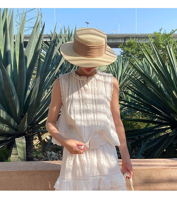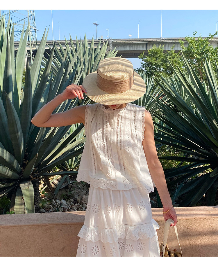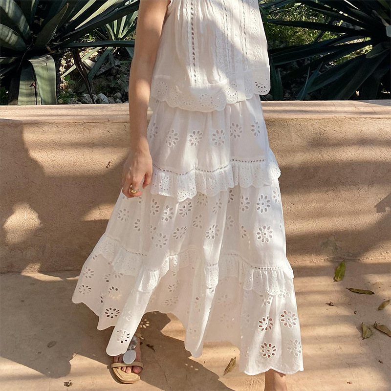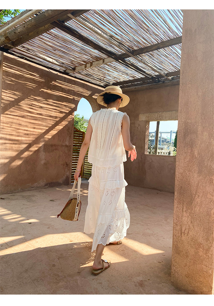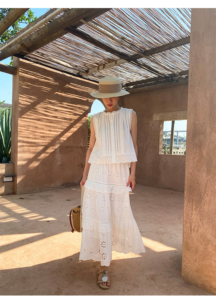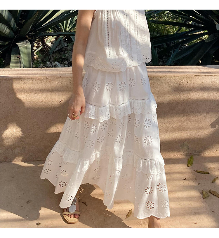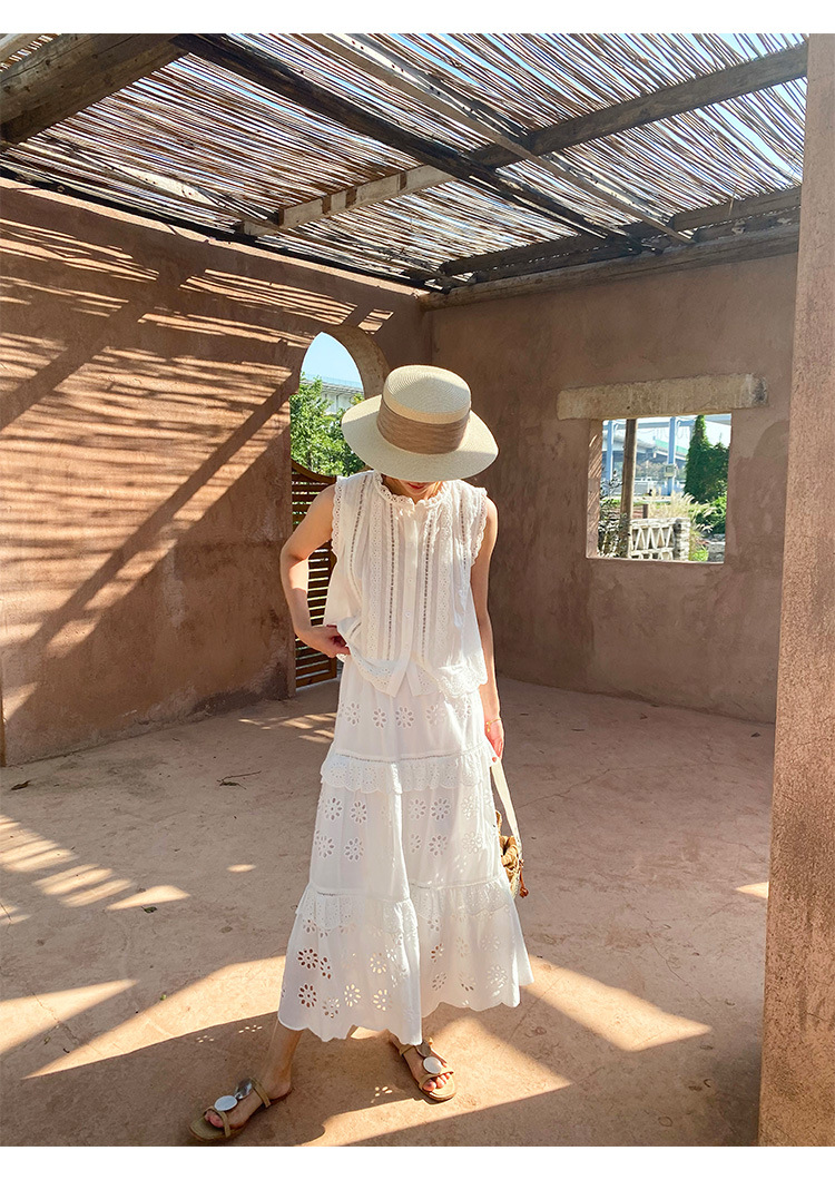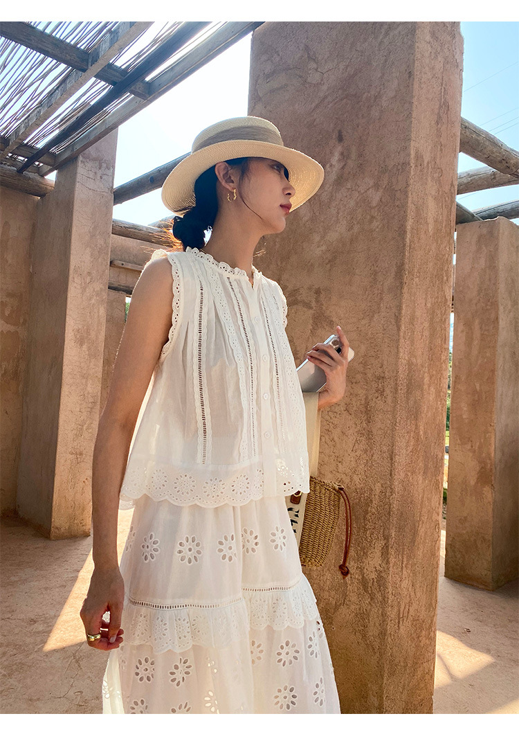 여름 새로운 프랑스 휴가 자수 작은 상단 절반 길이 원피스 여성 해외 무역 여성 의류 디자인 센스 세트