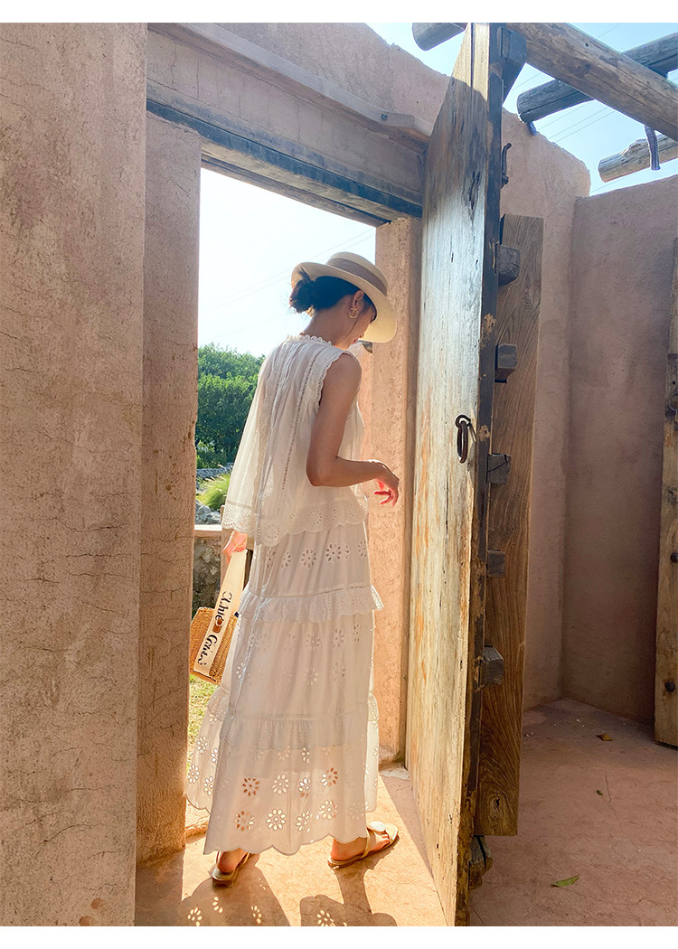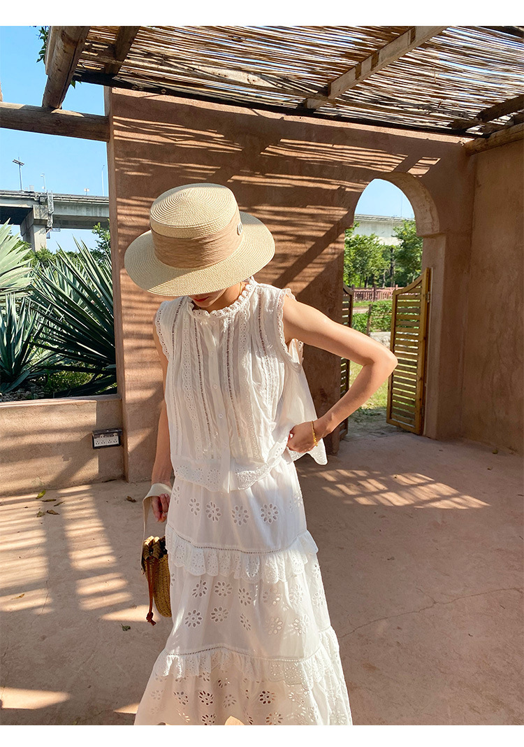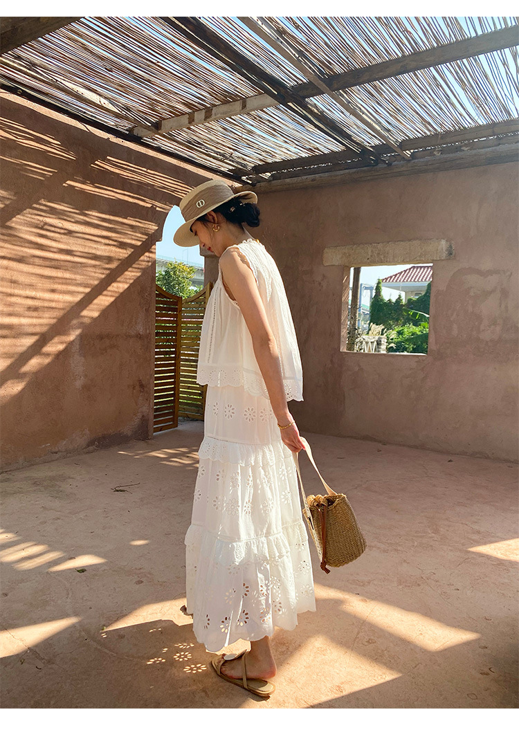 여름 새로운 프랑스 휴가 자수 작은 상단 절반 길이 원피스 여성 해외 무역 여성 의류 디자인 센스 세트스토어 가기