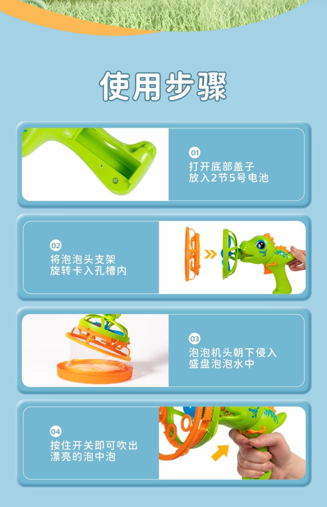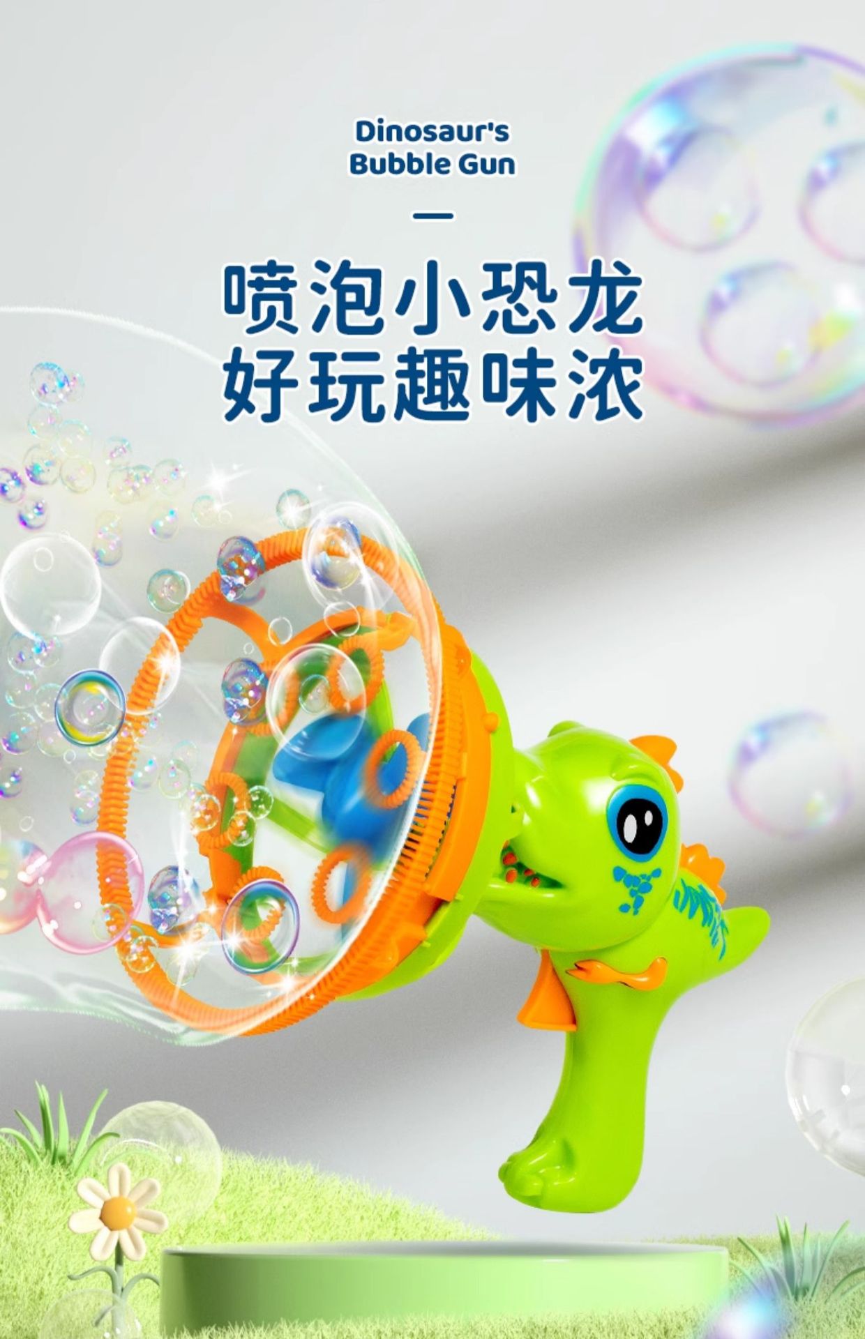 2025 인기 버블 머신 어린이용 휴대용 전동 거품총 남녀 공용 공룡 장난감 해외 도매스토어 가기