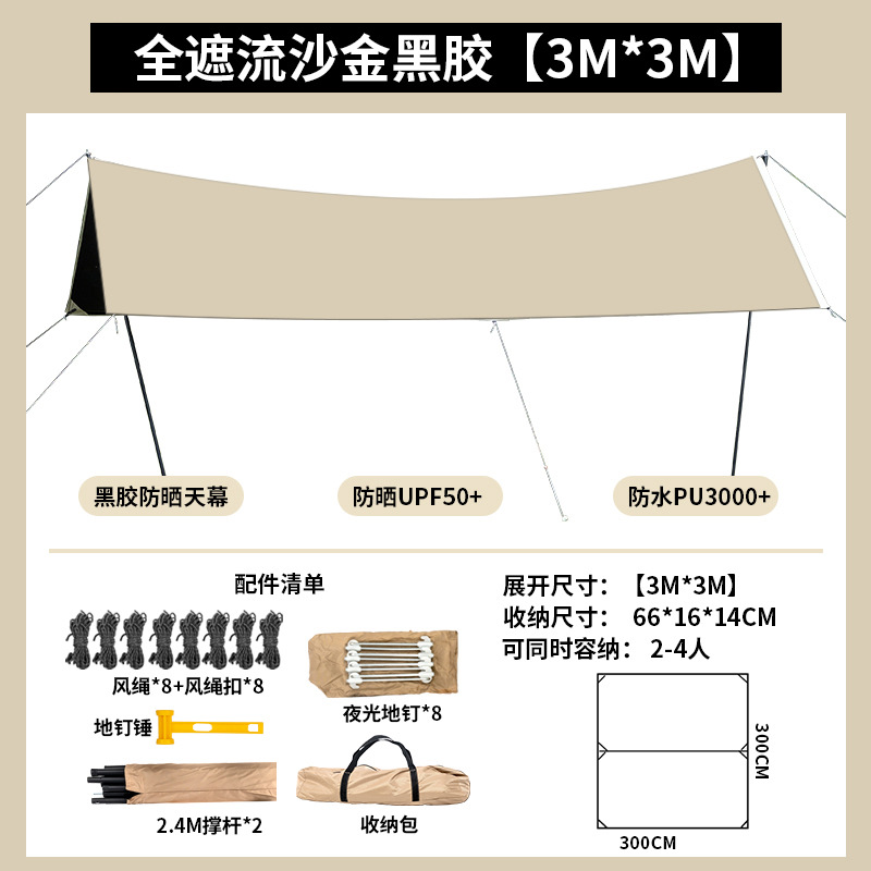 풀 쉐이딩 야외 캐노피 텐트 캠핑 휴대용 블랙 접착제 자외선 차단제 캐노피 나비 육각형 옥스포드 천