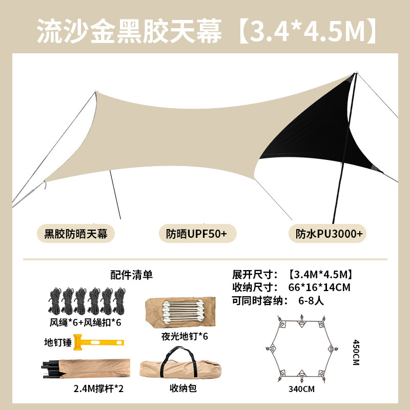 풀 쉐이딩 야외 캐노피 텐트 캠핑 휴대용 블랙 접착제 자외선 차단제 캐노피 나비 육각형 옥스포드 천스토어 가기
