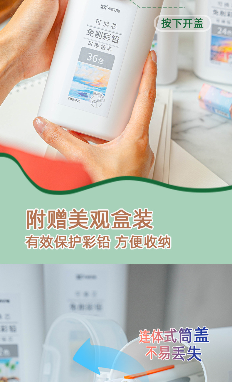 Tianzhuo 비 커팅 프레스는 코어 컬러 기계 연필을 닦을 수 있습니다 유성 리드 어린이 그림 학생 예술 그림스토어 가기