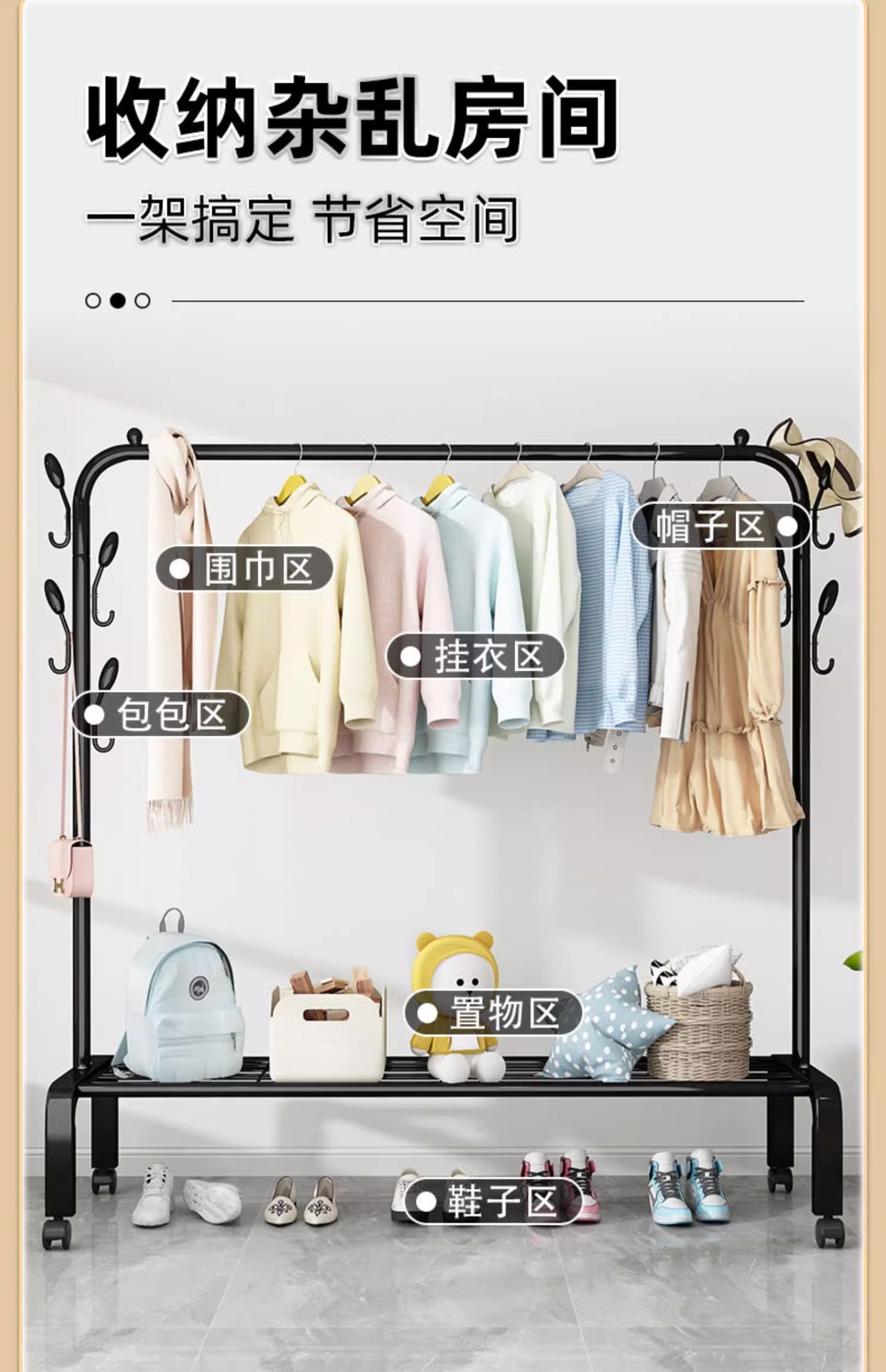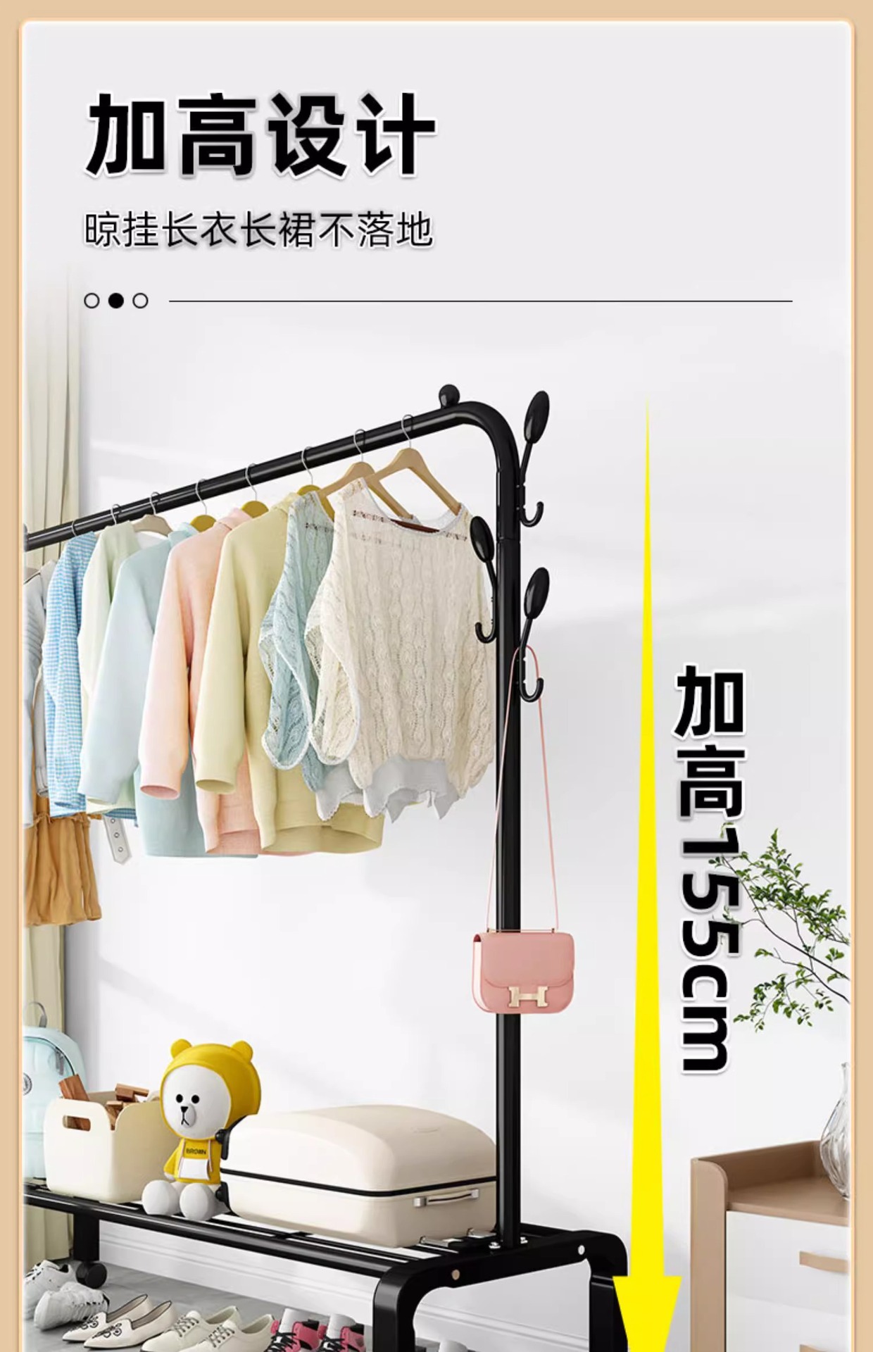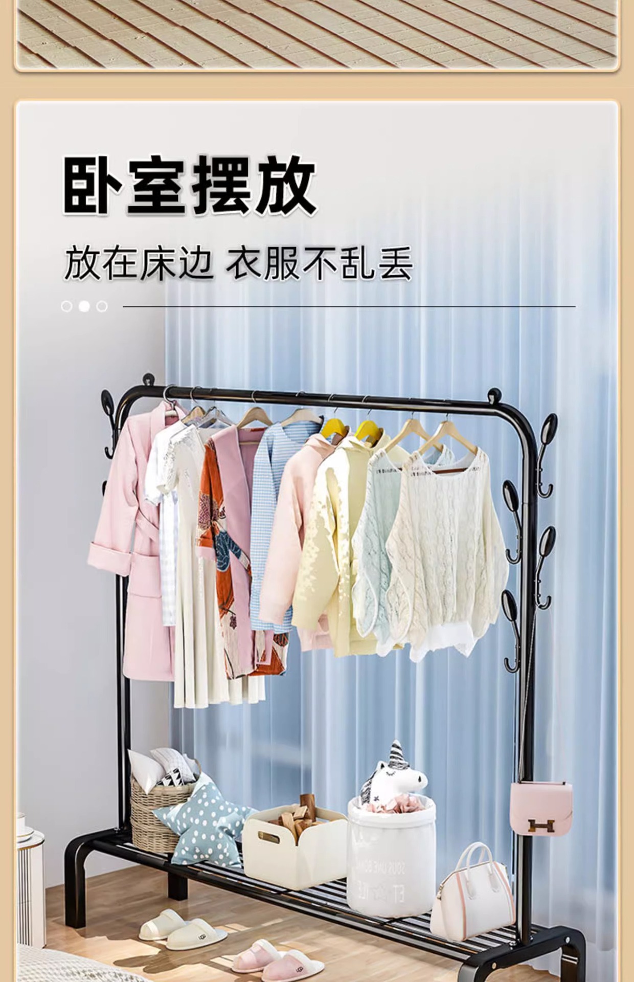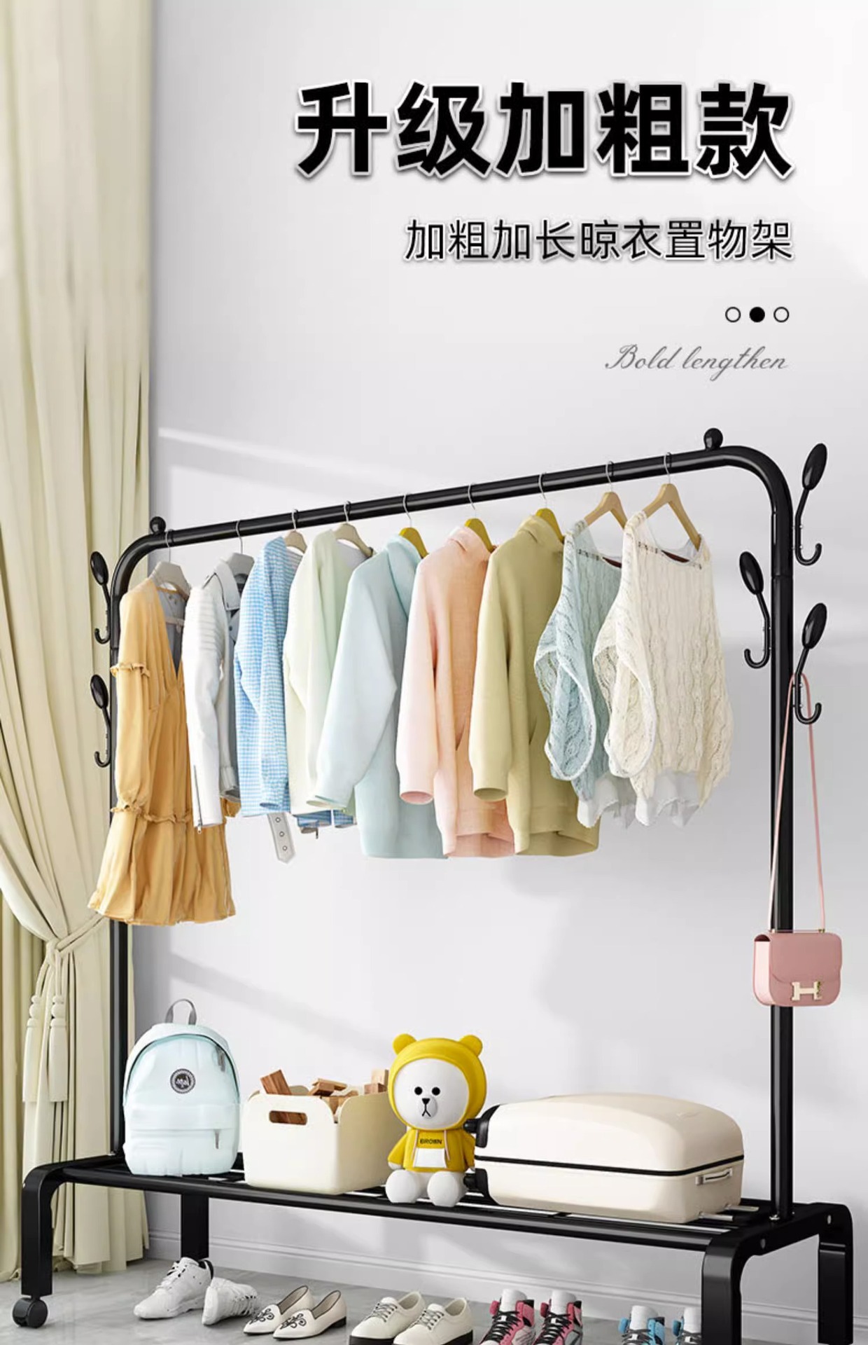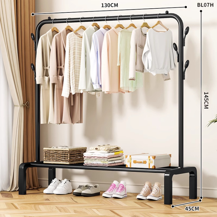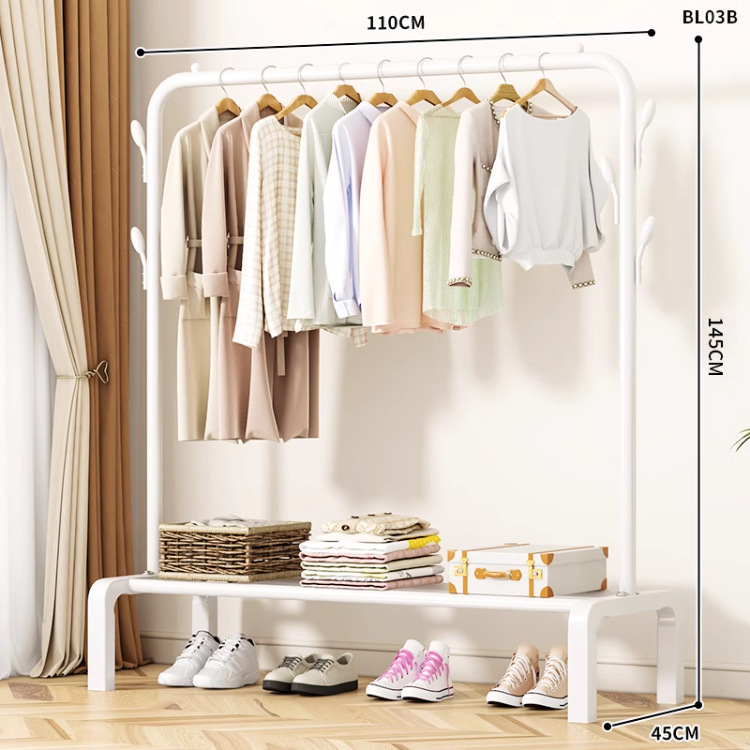 가정용 침실 간단한 옷 옷걸이 발코니 의류 랙 아이언 옷 건조 폴 더블 폴 옷 랙 바닥 수직스토어 가기