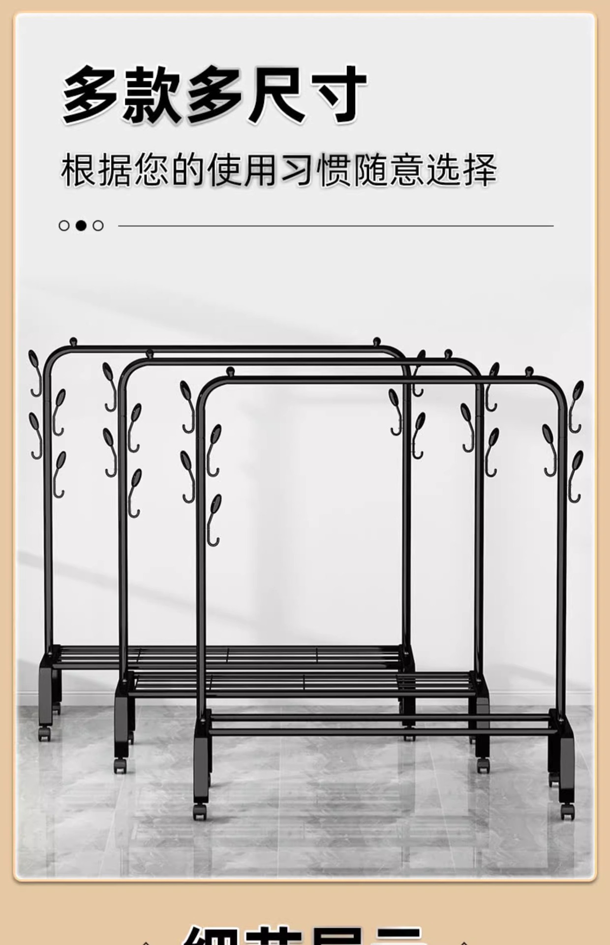 • 130CM 블랙 6 옷 후크 랙