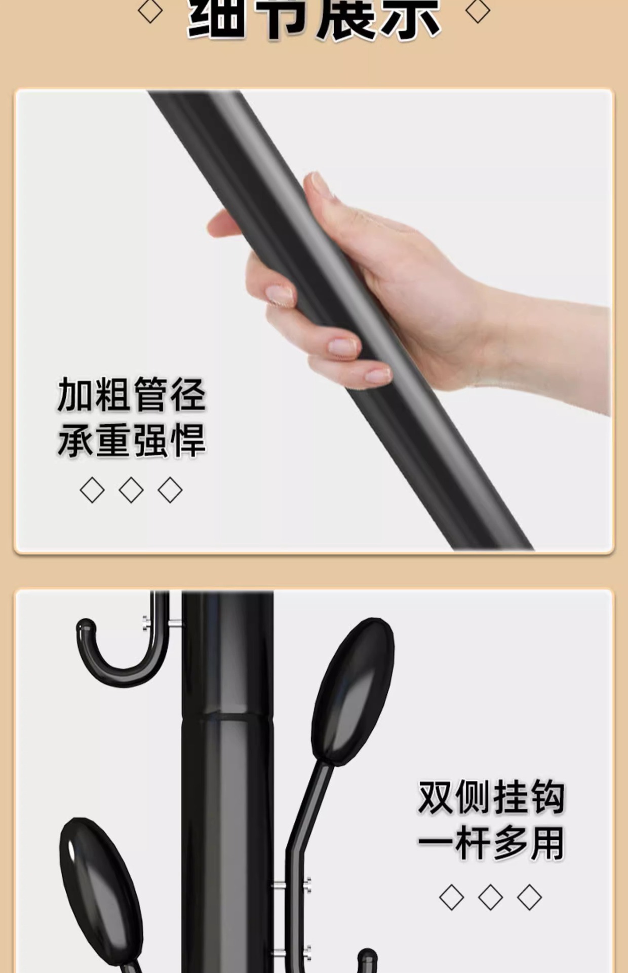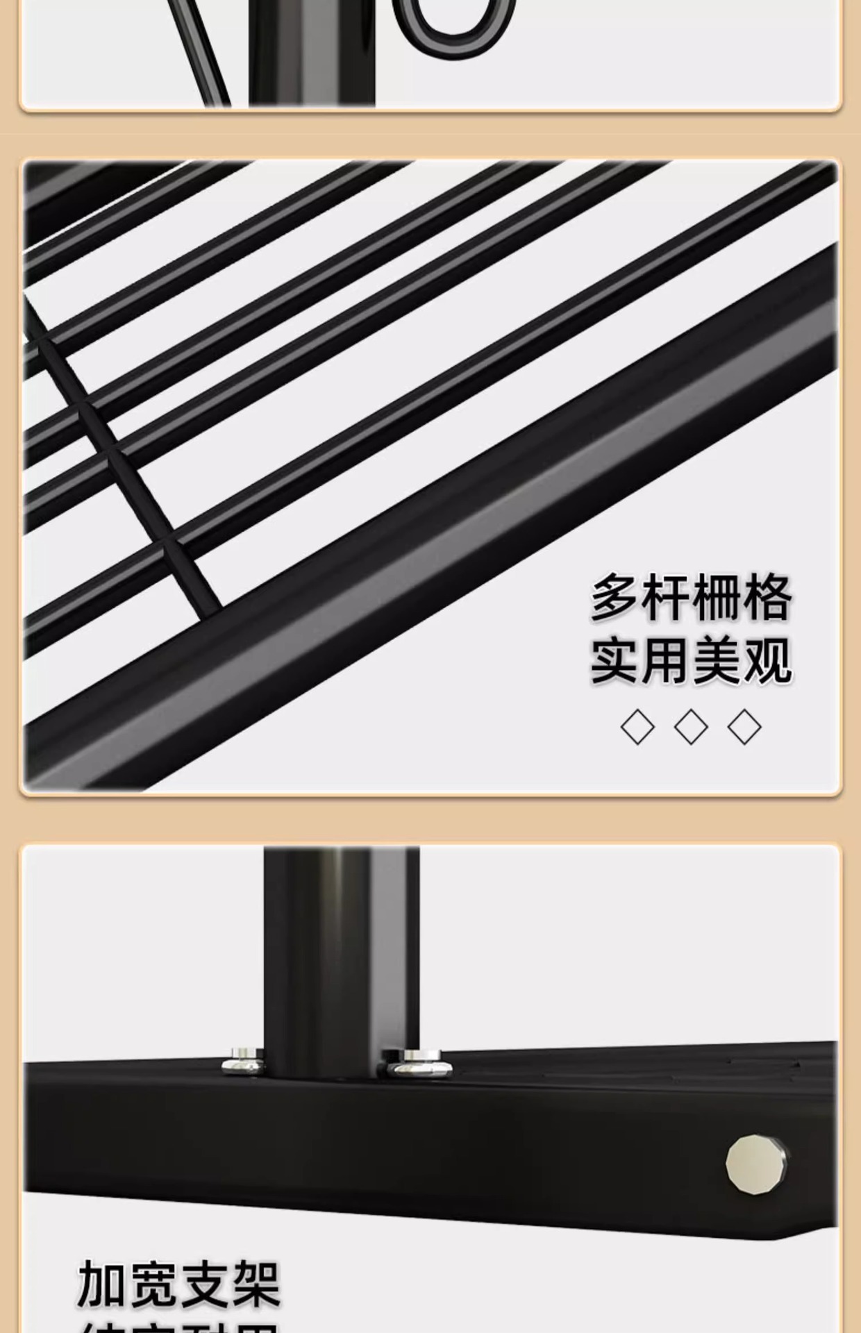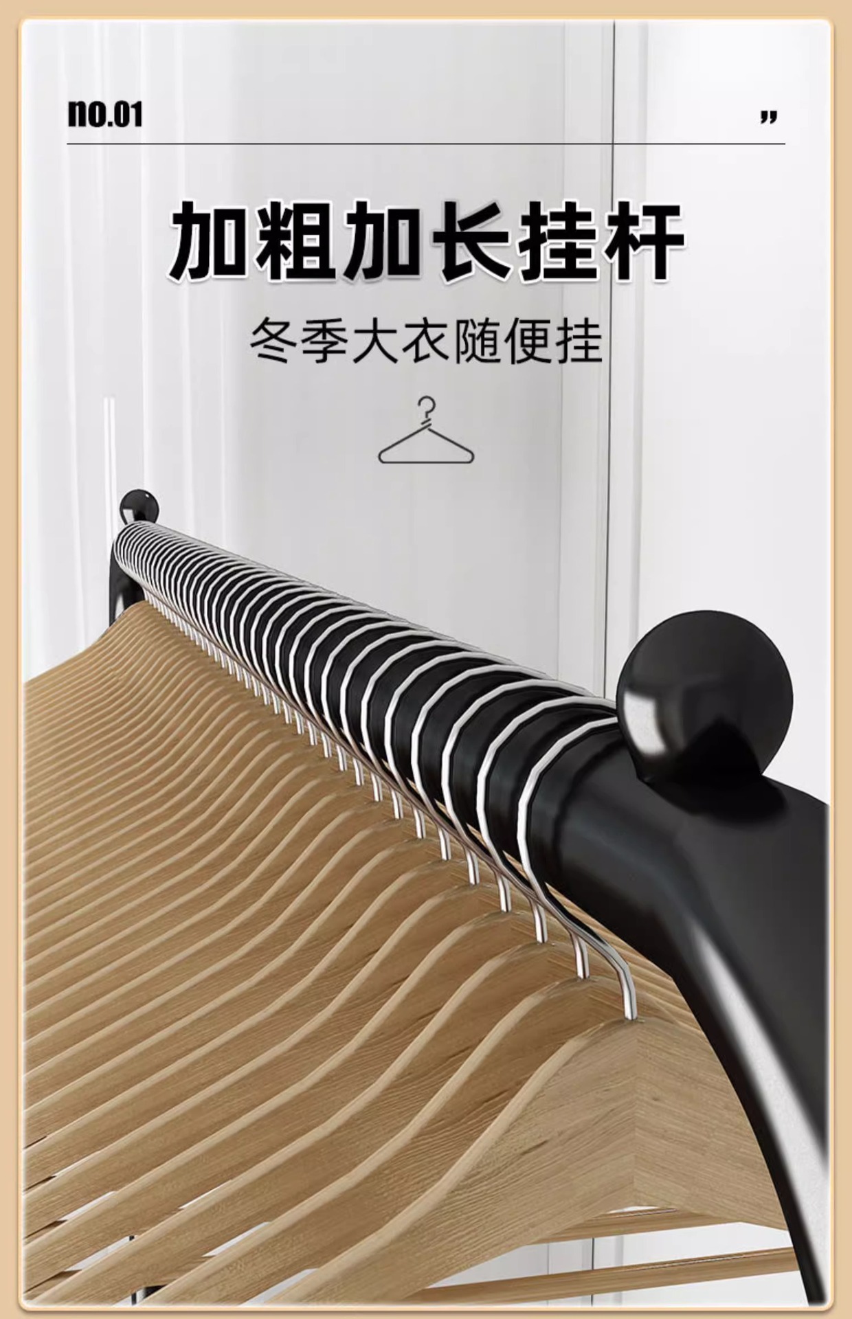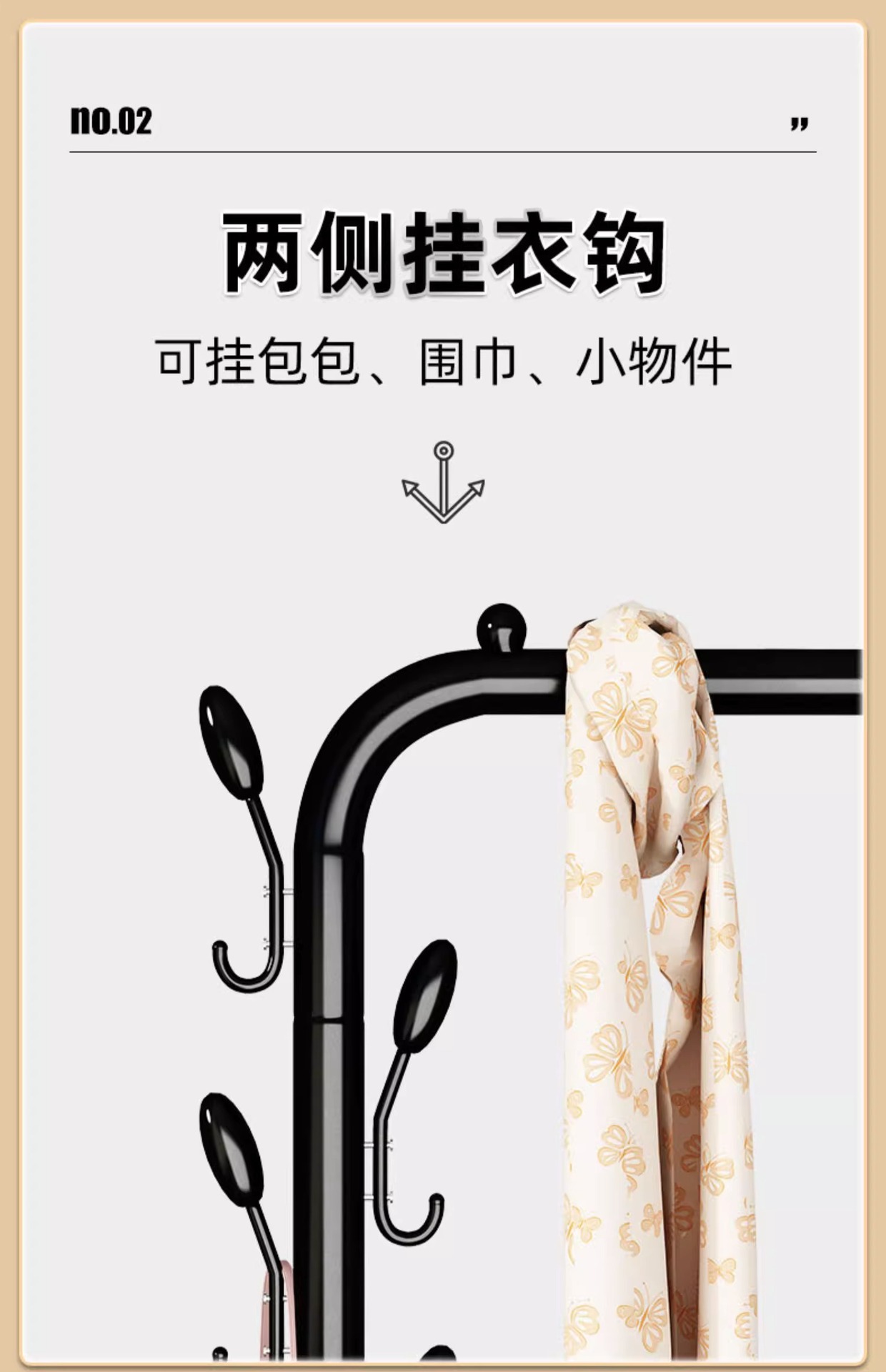 • 150CM 블랙 6 옷 후크 랙