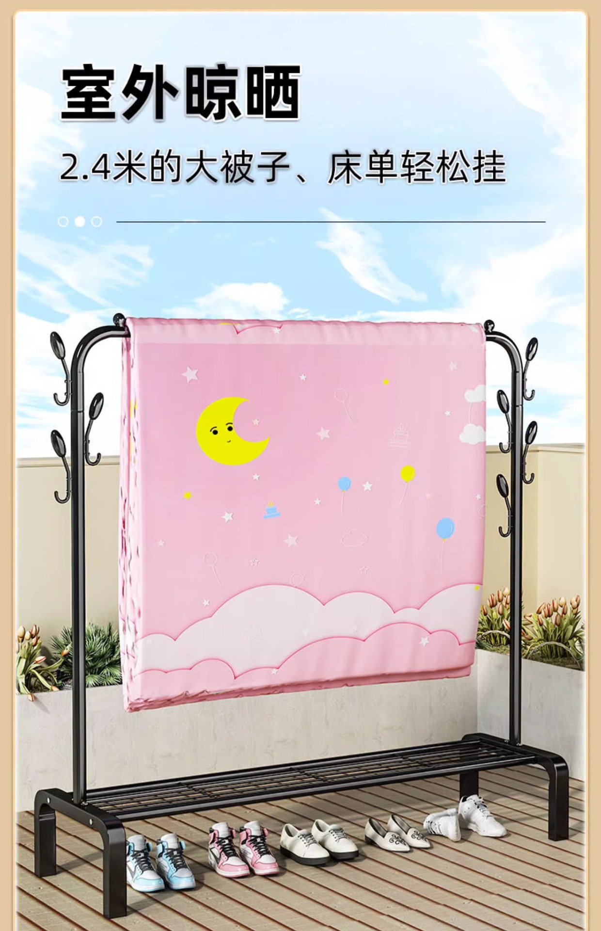 가정용 침실 간단한 옷 옷걸이 발코니 의류 랙 아이언 옷 건조 폴 더블 폴 옷 랙 바닥 수직
