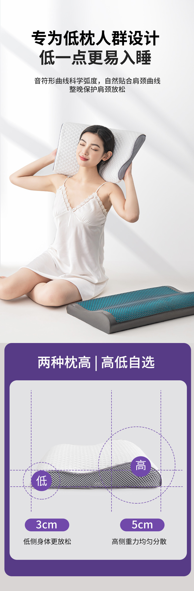 • 대나무 숯 화이트 젤 낮은 베개 60*35*5/3cm