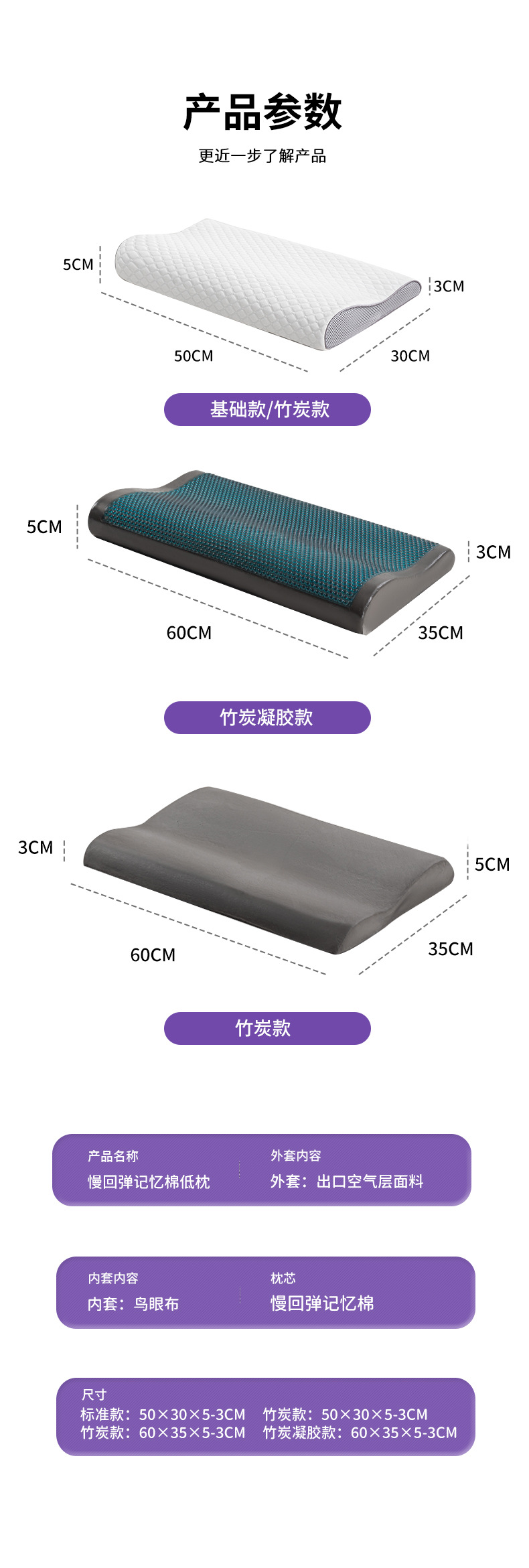 • 대나무 숯 흰색 낮은 베개 60*35*5/3cm