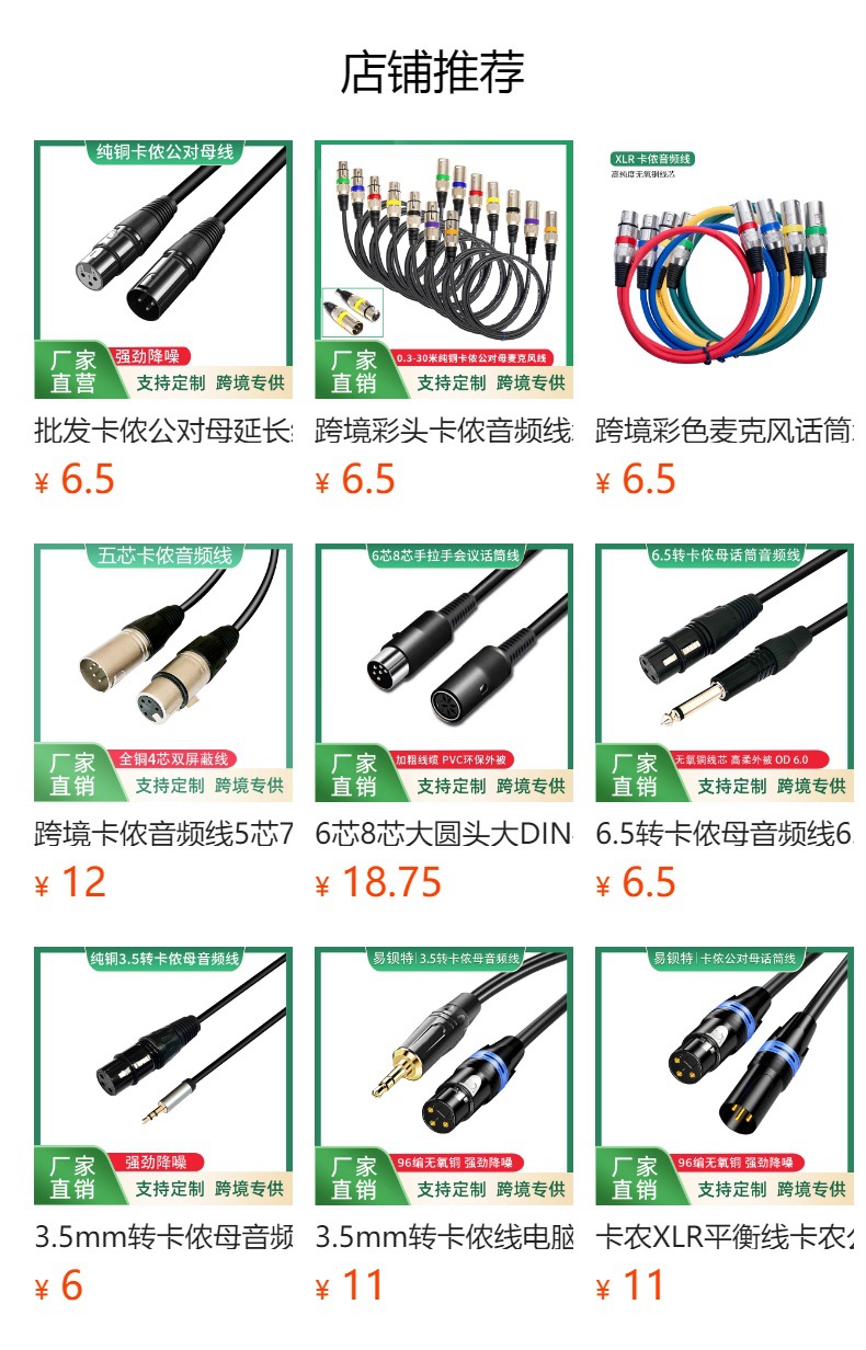 크로스보더 XLR(수-암) 오디오 케이블 세트 믹서 XLR 케이블 컬러 마이크 DMX 케이블스토어 가기