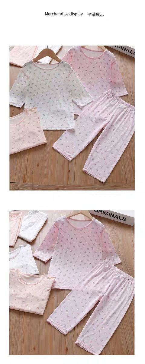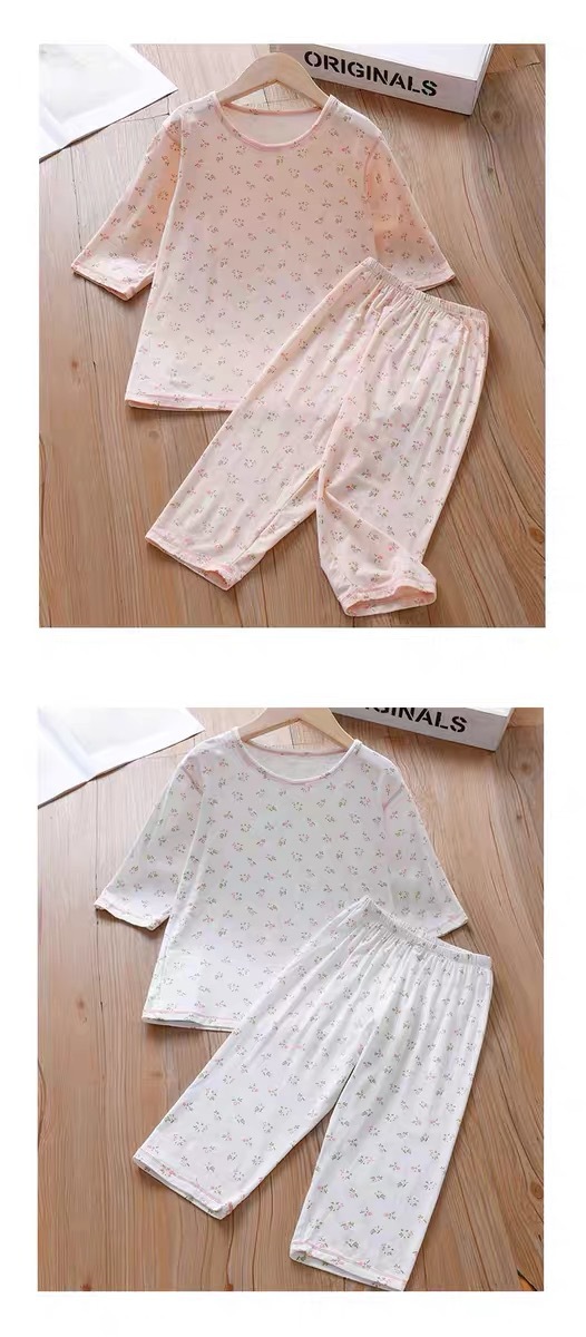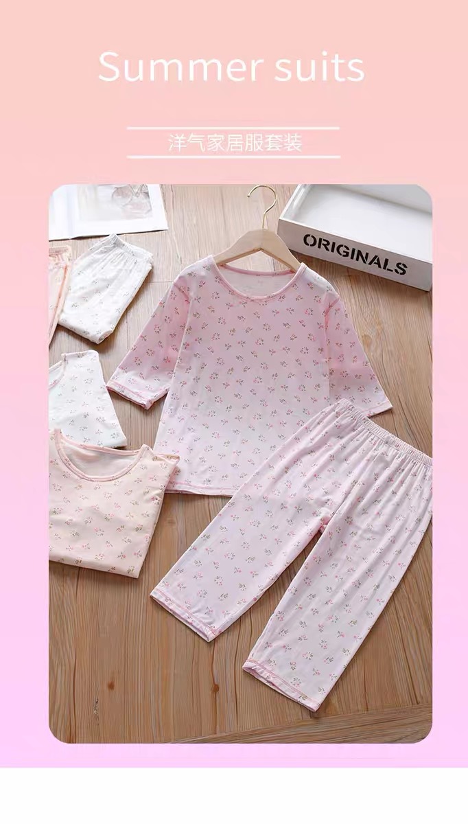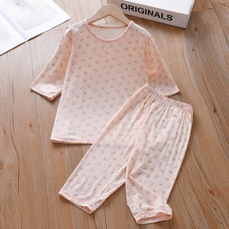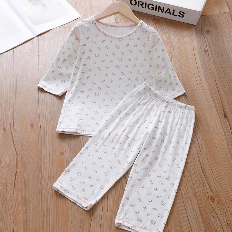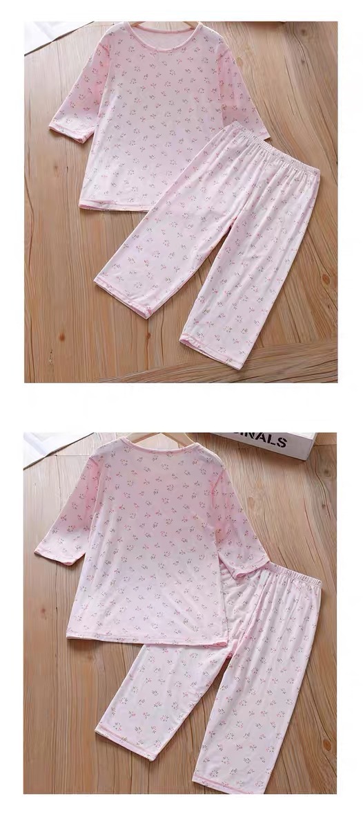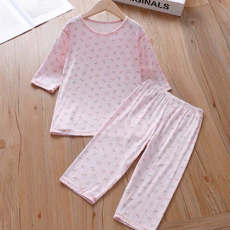 소녀 여름 에어컨 의류 파자마 부드러운 고탄성 캐주얼 모달 피부 친화적 인 통기성 땀 흡수성 7 점 슬리브 세트