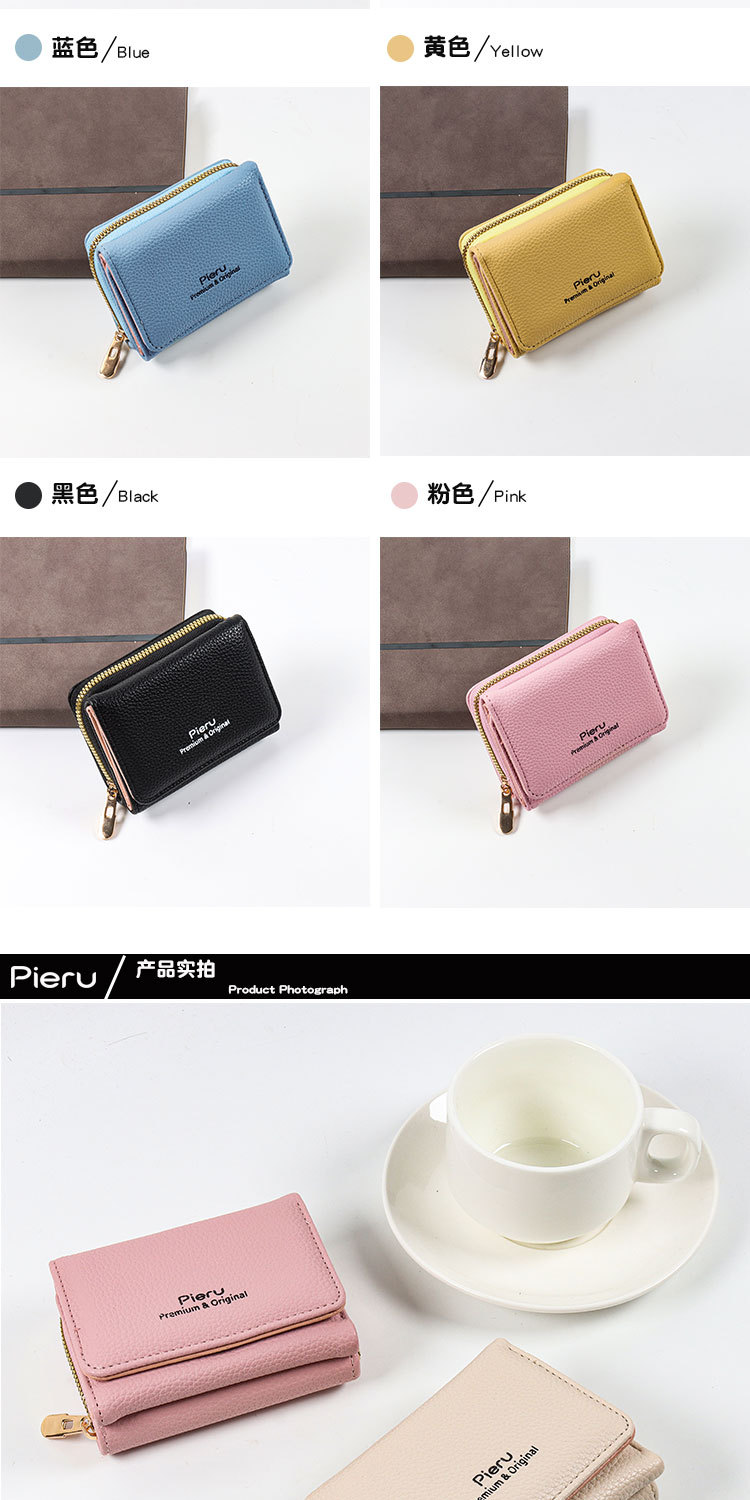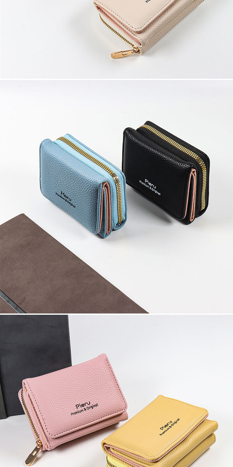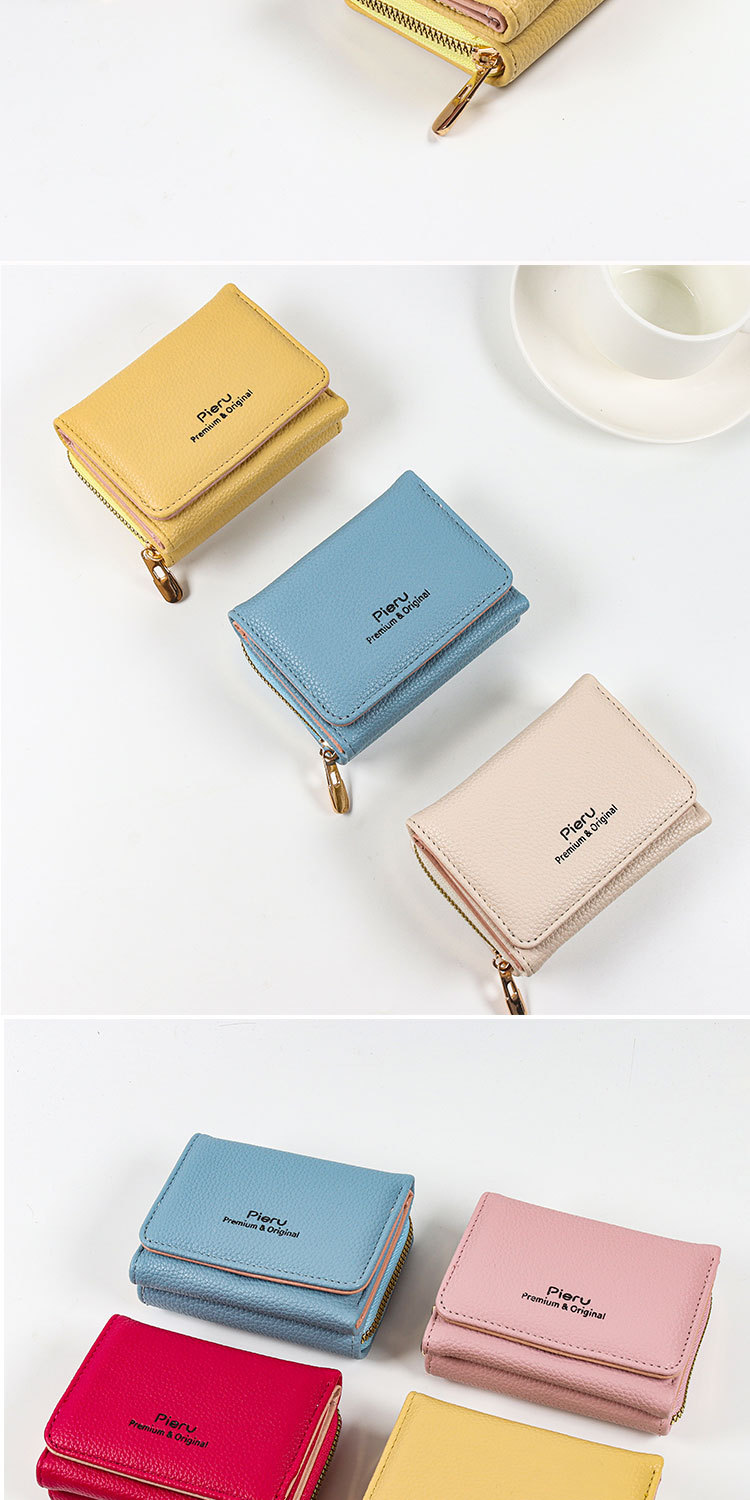 2024 국경 지갑 여성의 짧은 한국식 지퍼 동전 지갑 간단한 여성 3 배 다기능 지갑 카드 홀더