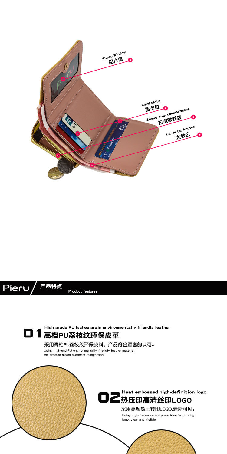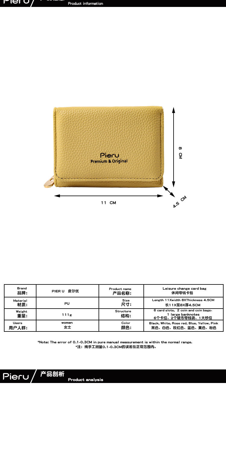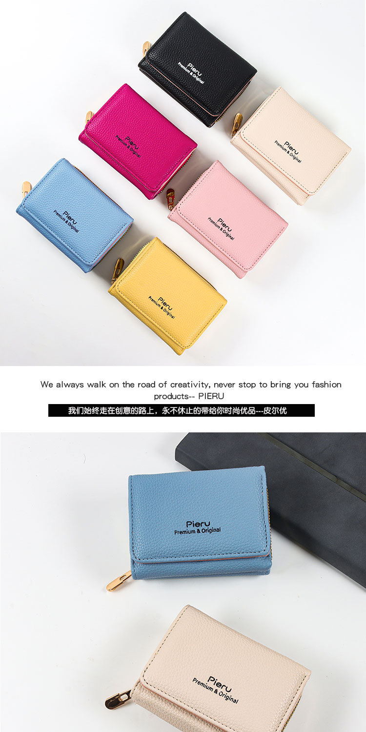 2024 국경 지갑 여성의 짧은 한국식 지퍼 동전 지갑 간단한 여성 3 배 다기능 지갑 카드 홀더