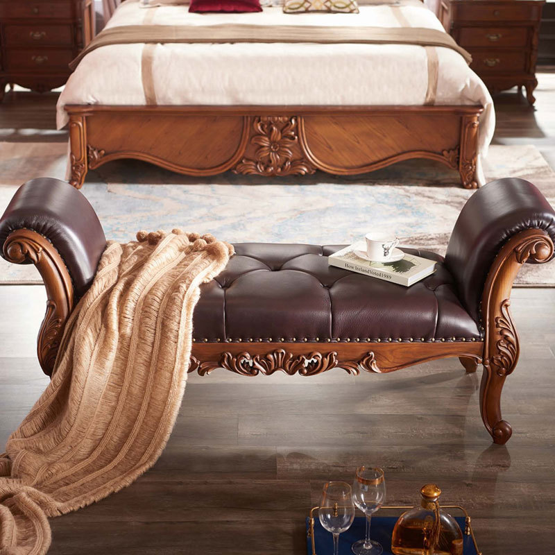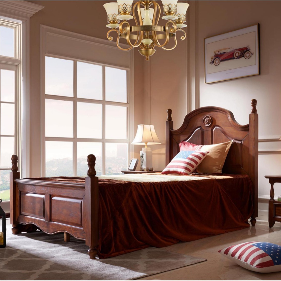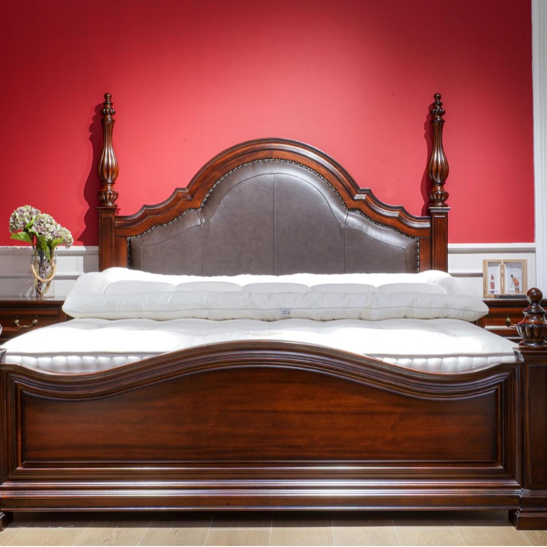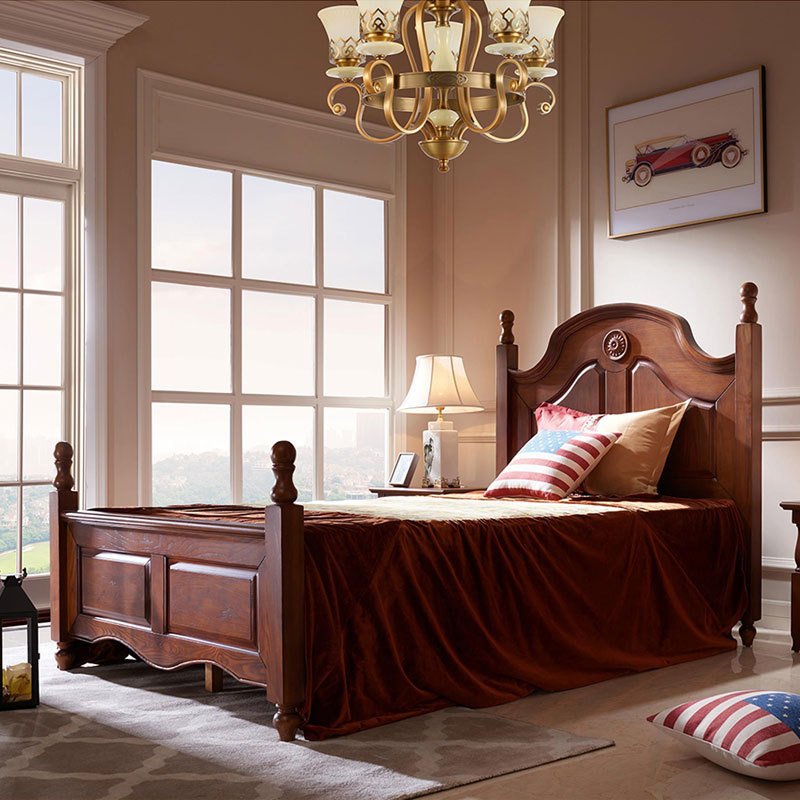 복고풍 미국식 침대, 소프트 패브릭, 라이트 럭셔리 더블 침대, 원목 빌라 마스터 침실 침대, 1.8m 천연 가죽 웨딩 침대, 원목 침대, 대형 침대스토어 가기