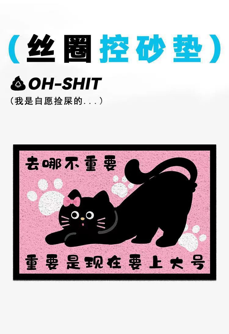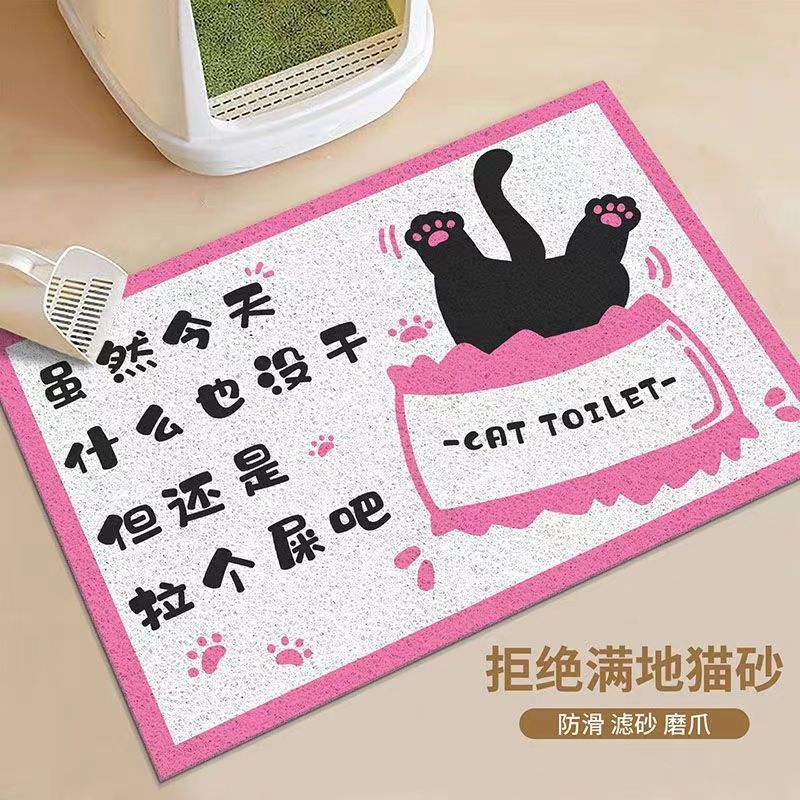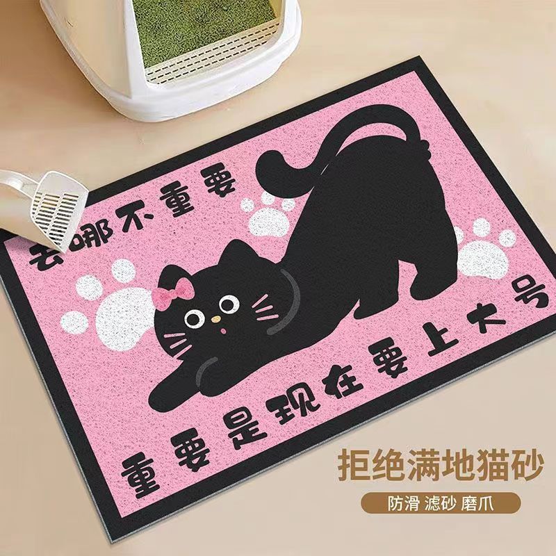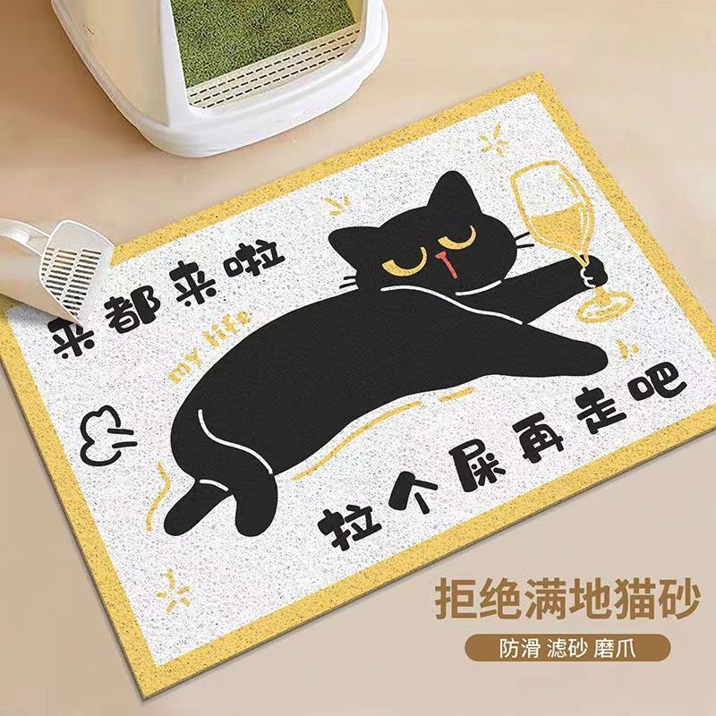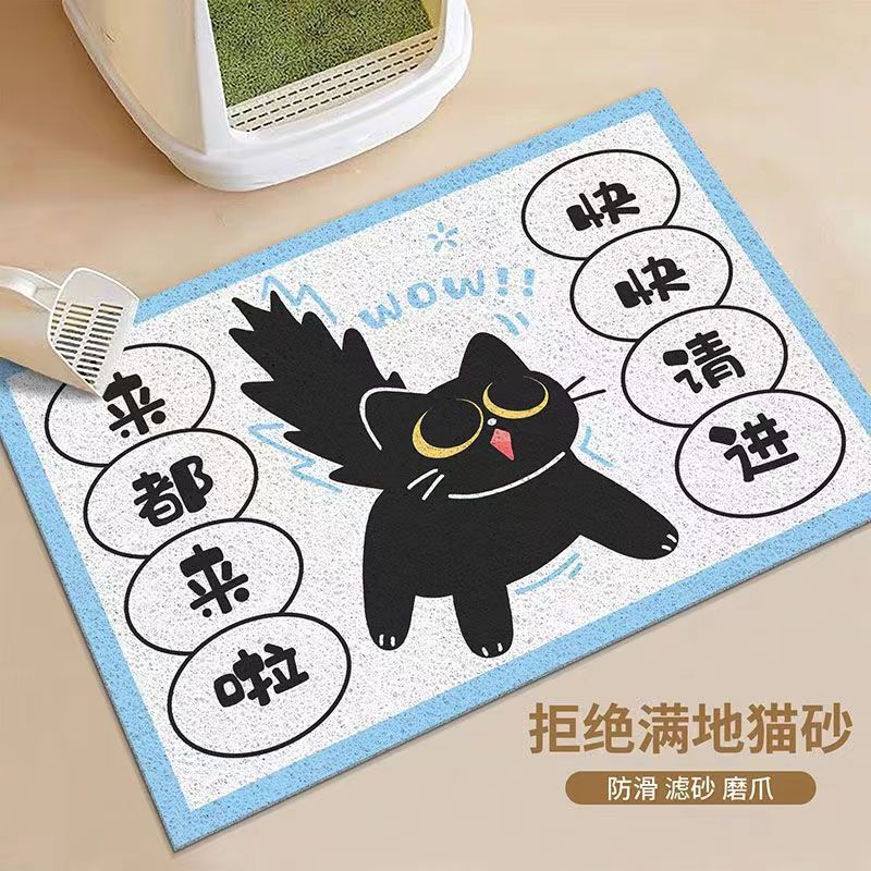 만화 검은 고양이 비 슬립 실크 링 고양이 쓰레기 매트 가정용 더러운 저항하는 고양이 그릇 매트 착용 방지 및 사용하기 쉬운 세척-무료 애완 동물 바닥 매트스토어 가기