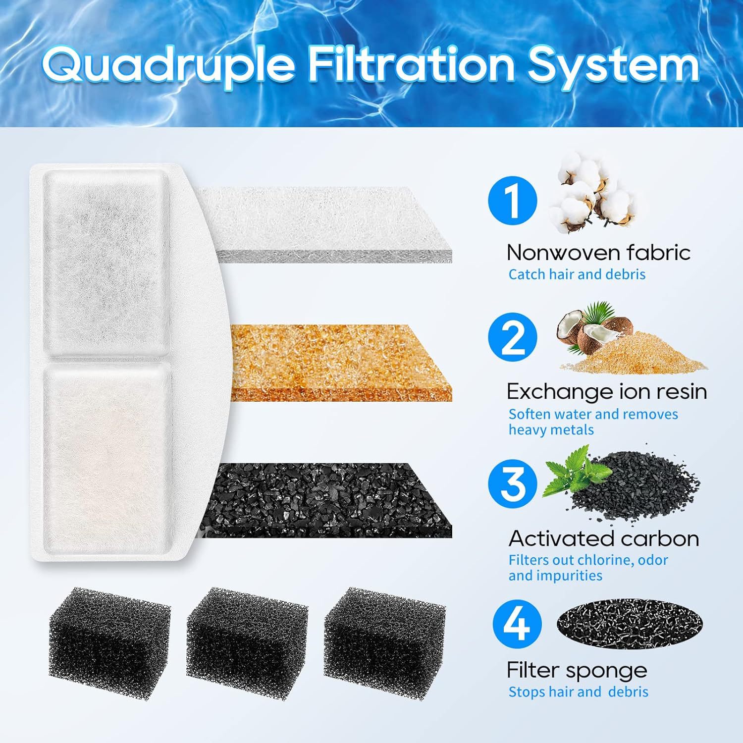 아마존 핫 애완 동물 워터 디스펜서 필터 요소 고양이 워터 디스펜서 필터 면 코코넛 쉘 활성 탄소 워터 피더 필터 조각스토어 가기