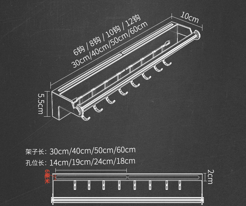 • 총 애쉬 삽입 칼 헝겊 막대 12 후크 60cm (천공 손톱없는 이중 목적)