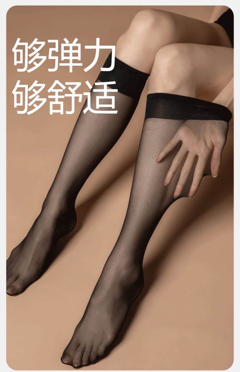 Mid-배럴 실크 스타킹 여성 블랙 다육 질 미드 롱 벨벳 커프 스타킹 하프 배럴 여름 울트라 얇은 롱 배럴 보이지 않는 양말
