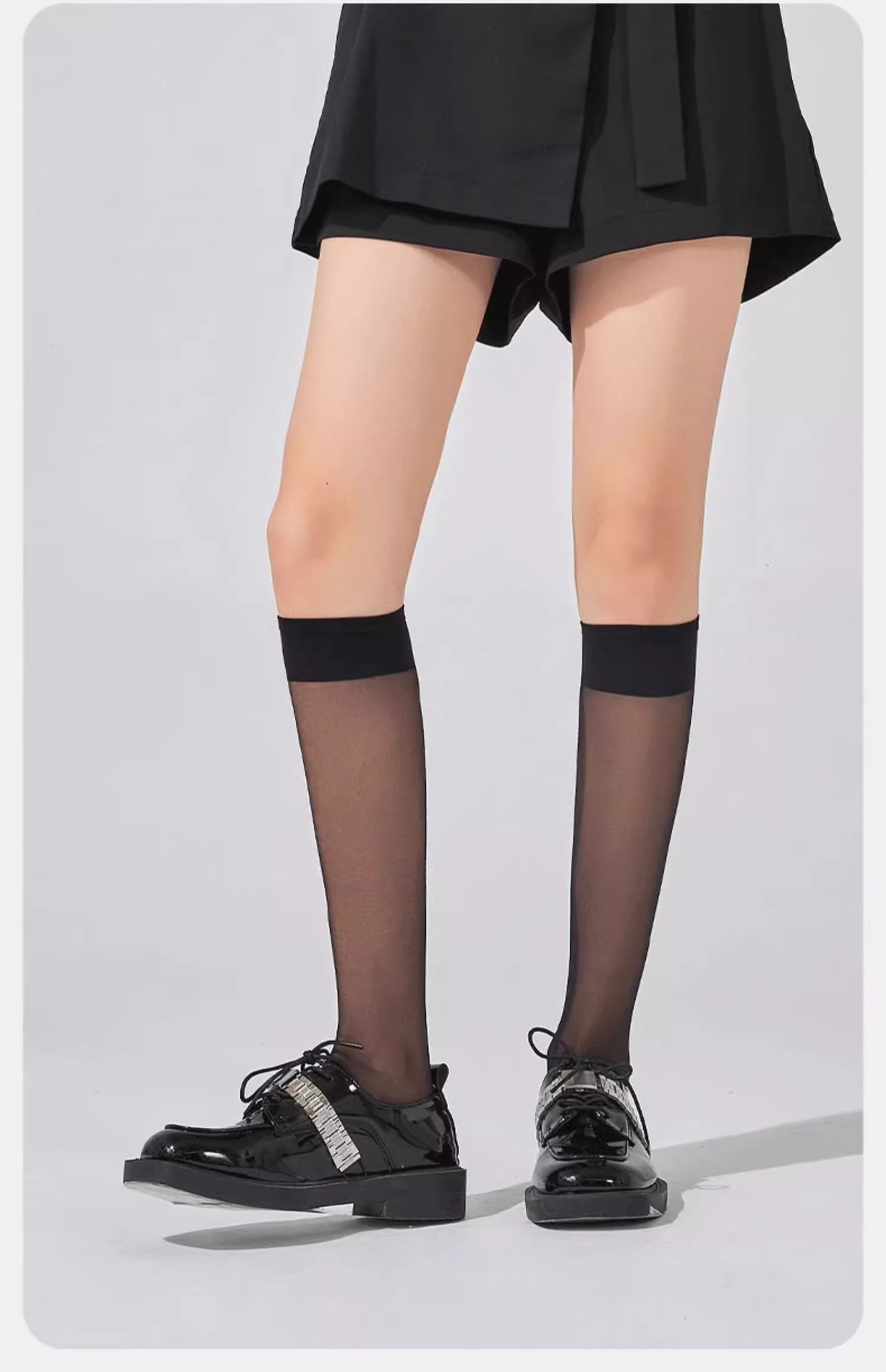• 블랙 미드 튜브 종아리 양말 알몸 양말 포장 없음