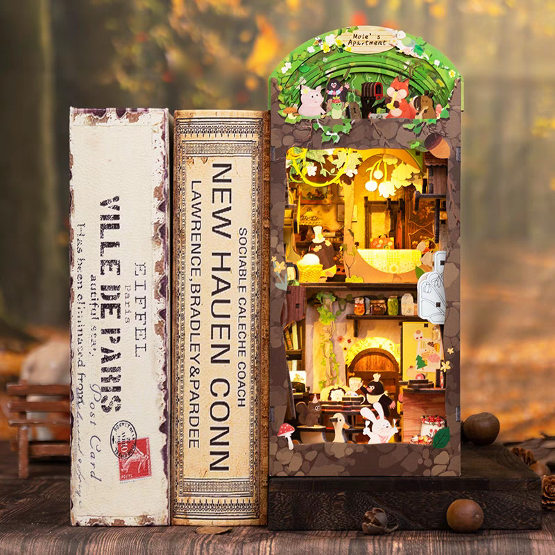 수제 기차 책 Diy 캐빈 장면 마이크로 캐빈 모델 수제 조립 건물 블록 작은 집 선물 남성스토어 가기