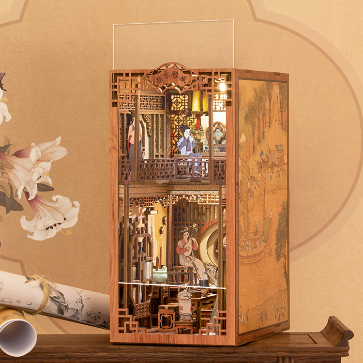 수제 기차 책 Diy 캐빈 장면 마이크로 캐빈 모델 수제 조립 건물 블록 작은 집 선물 남성