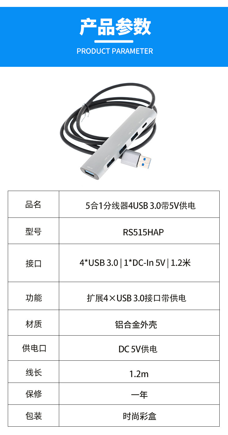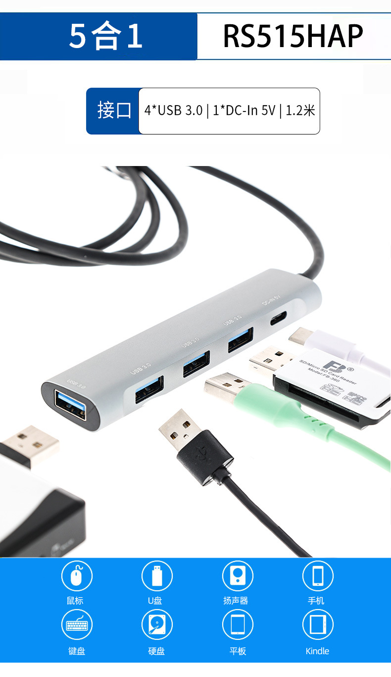 Ai Rongsheng 개인 모델 5-in -1 스플리터 4xUSB 3.0 재고 허브 DC 5V 전원 공급 장치 동일 Tmall스토어 가기