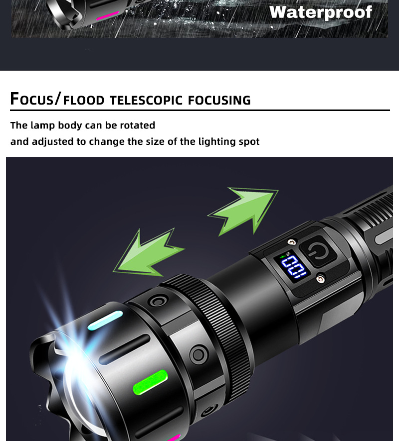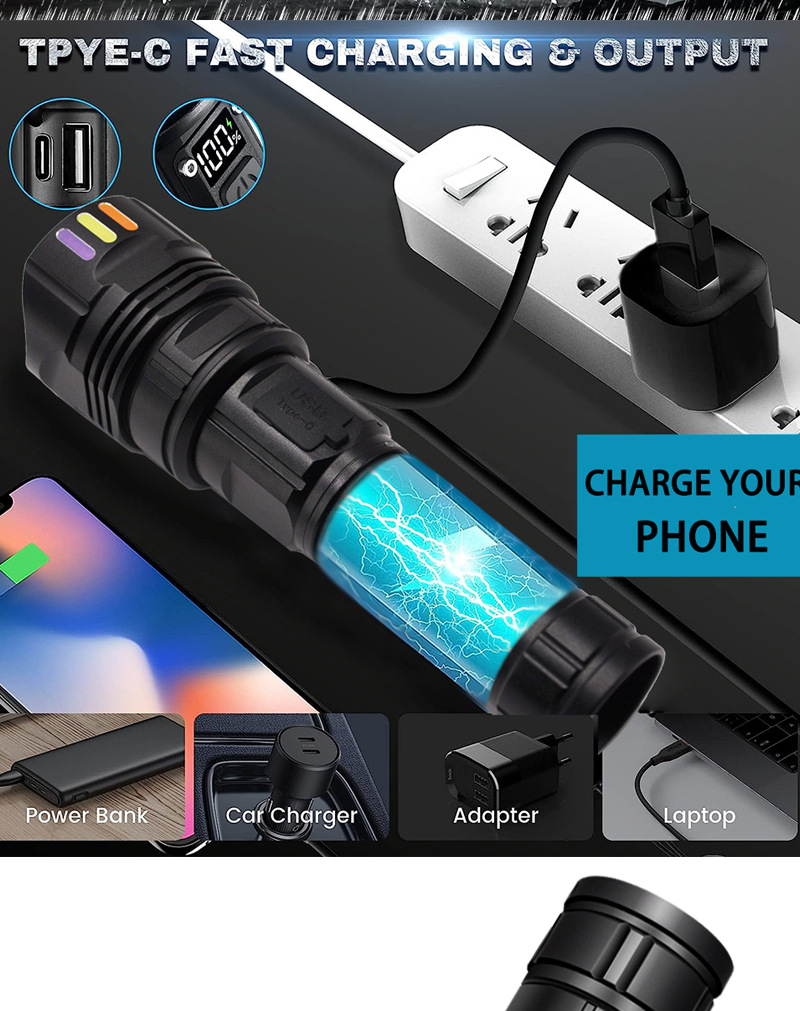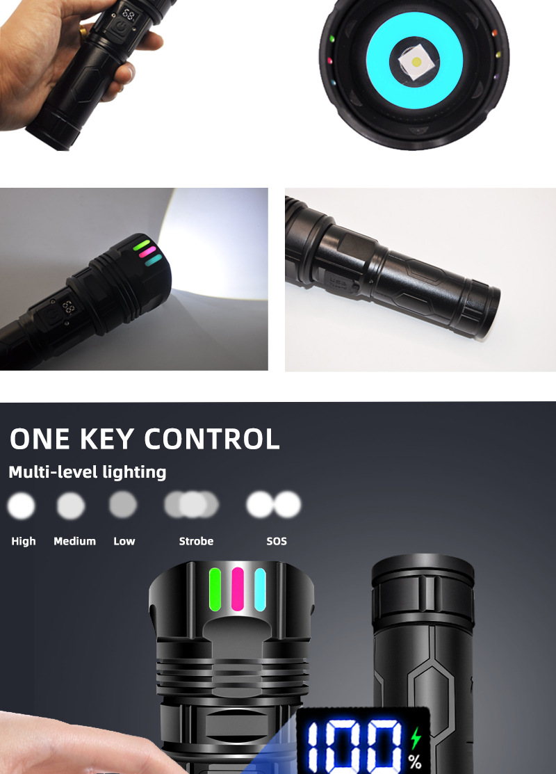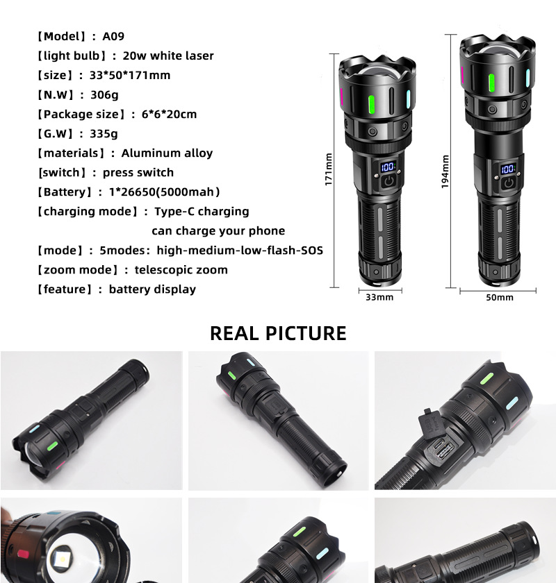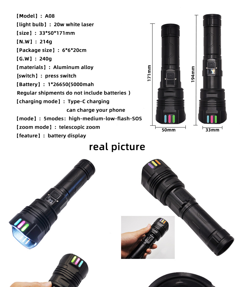 LED 알루미늄 합금 손전등 레이저 총 장시간 지속 야외 충전식 휴대용 다기능 작업등 충전식