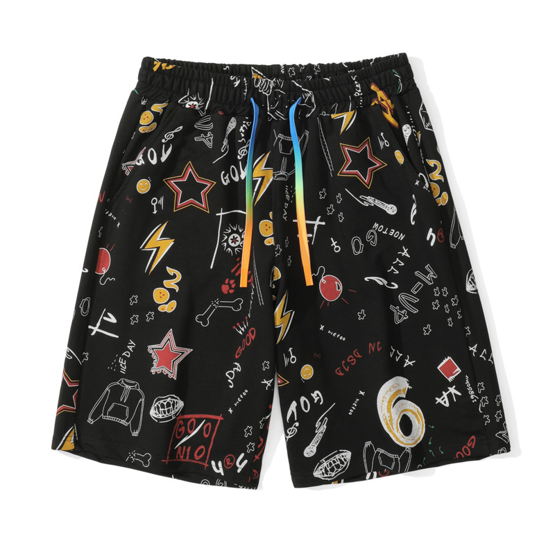 코튼 스포츠 캐주얼 반바지 남자 여름 얇은 십대 유행 브랜드 편지 전체 인쇄 5 점 바지스토어 가기