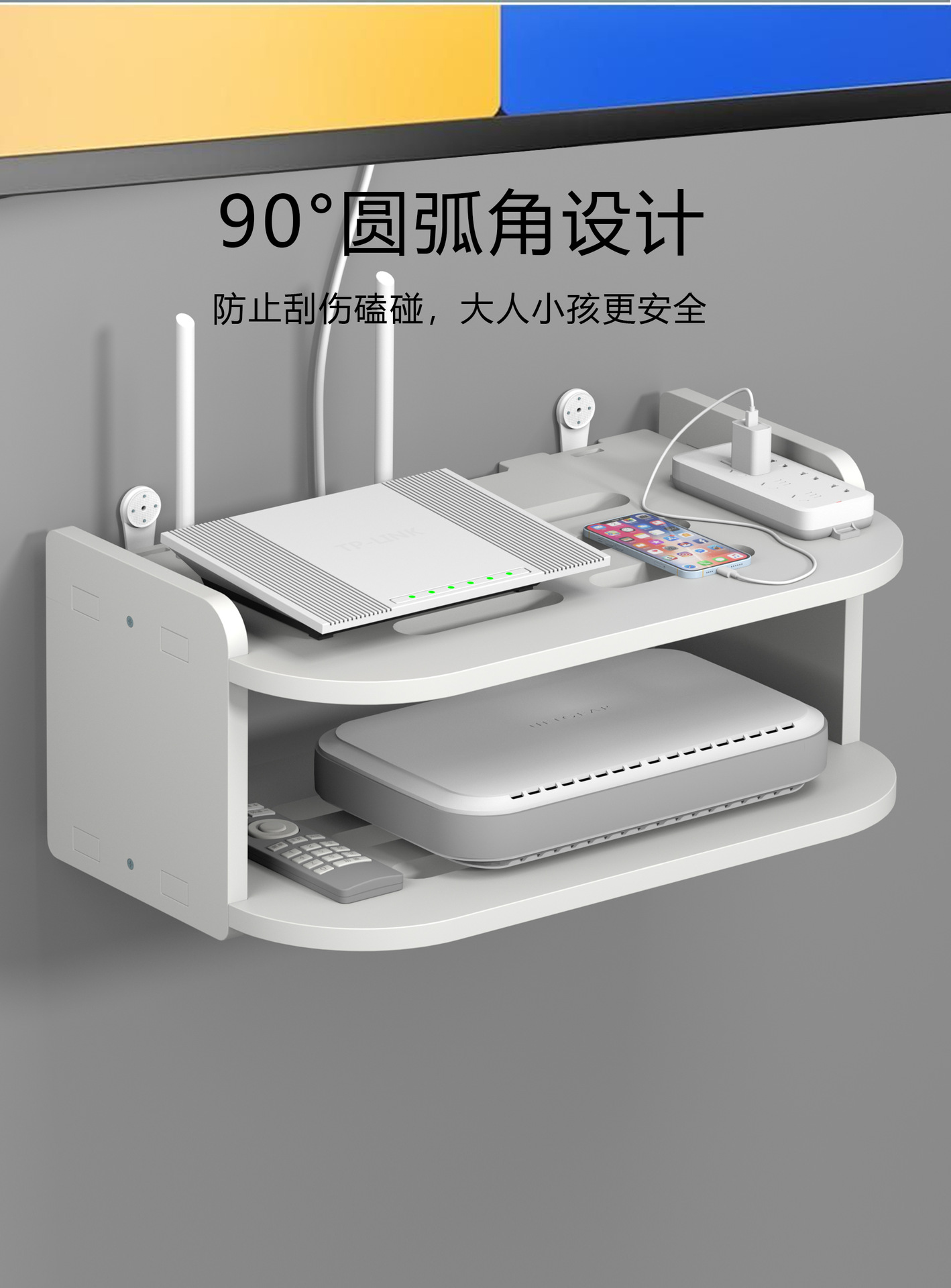 TV 셋톱 박스 스토리지 랙 벽 매달려 벽 스토리지 랙 펀치 프리 라우터 스토리지 와이파이 벽 스토리지 랙