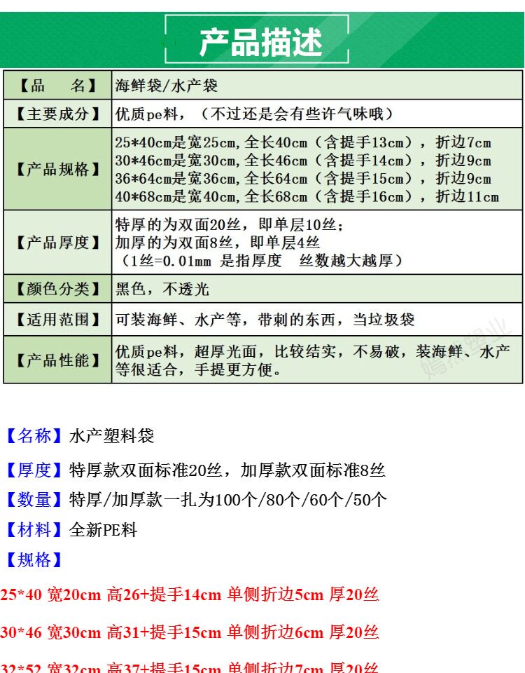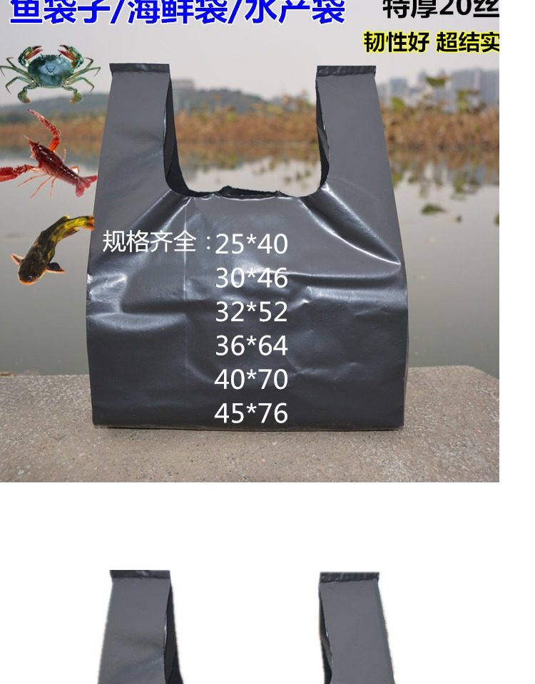 여분의 두꺼운 해산물 가방 수생 가방 검은 플라스틱 조끼 핸드백 하드웨어 포장 가방 판매 생선 가방 두껍게 쓰레기 봉투