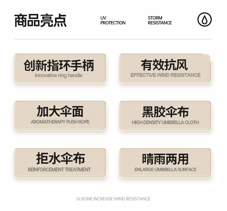 • 두꺼운 검은 접착제 자동 화창한 우산 [얼음 복숭아 분말