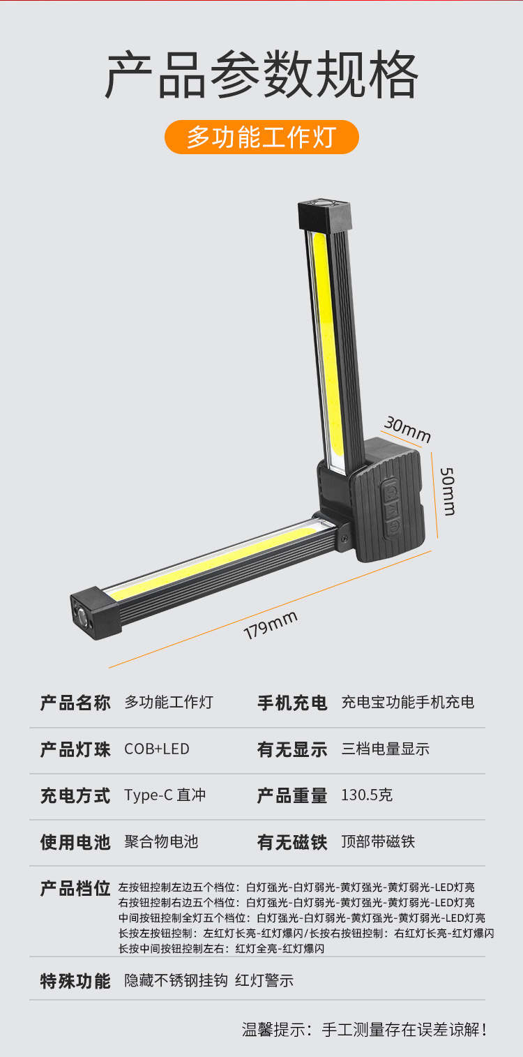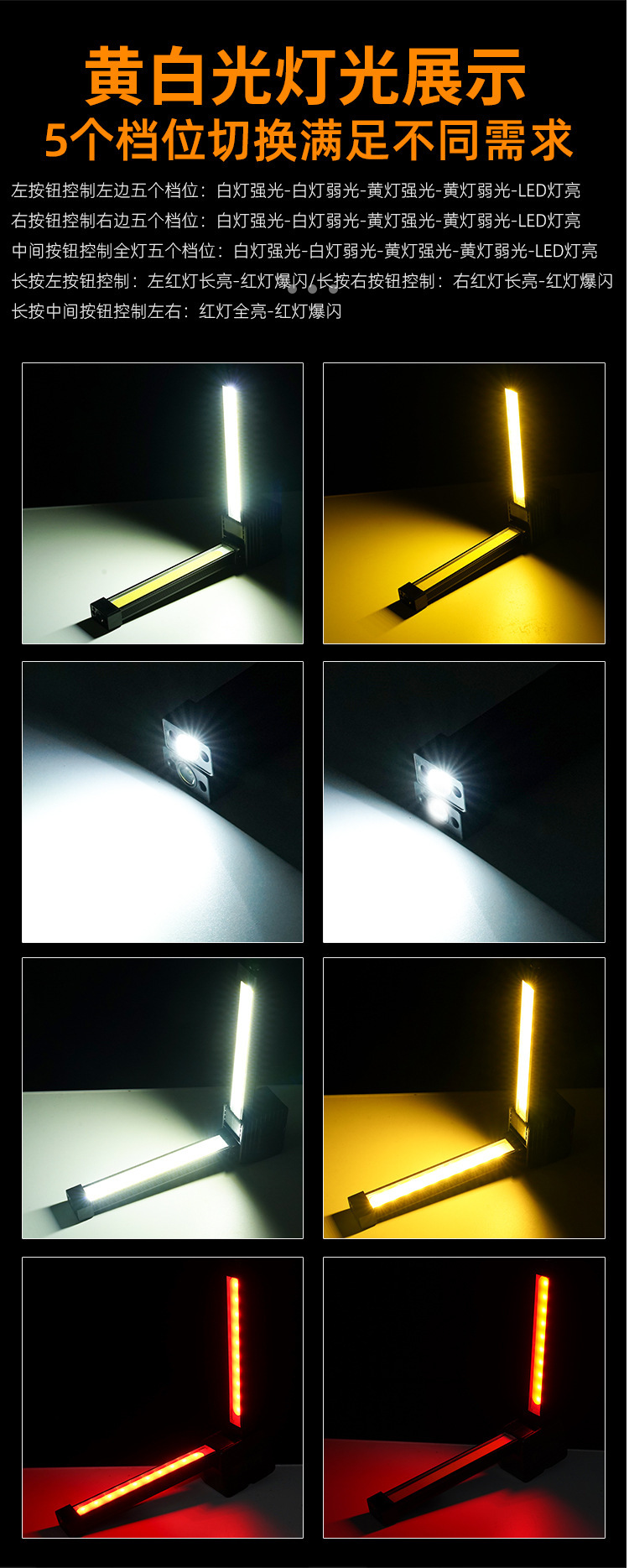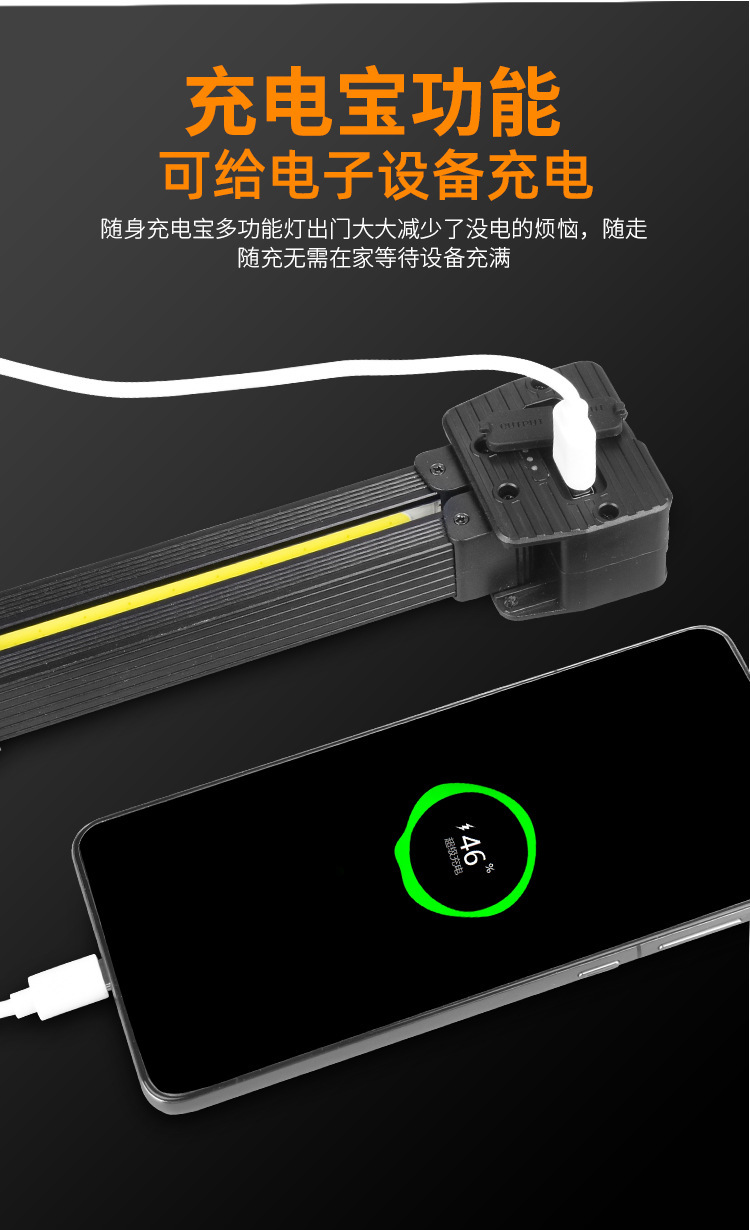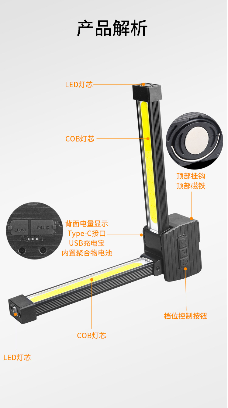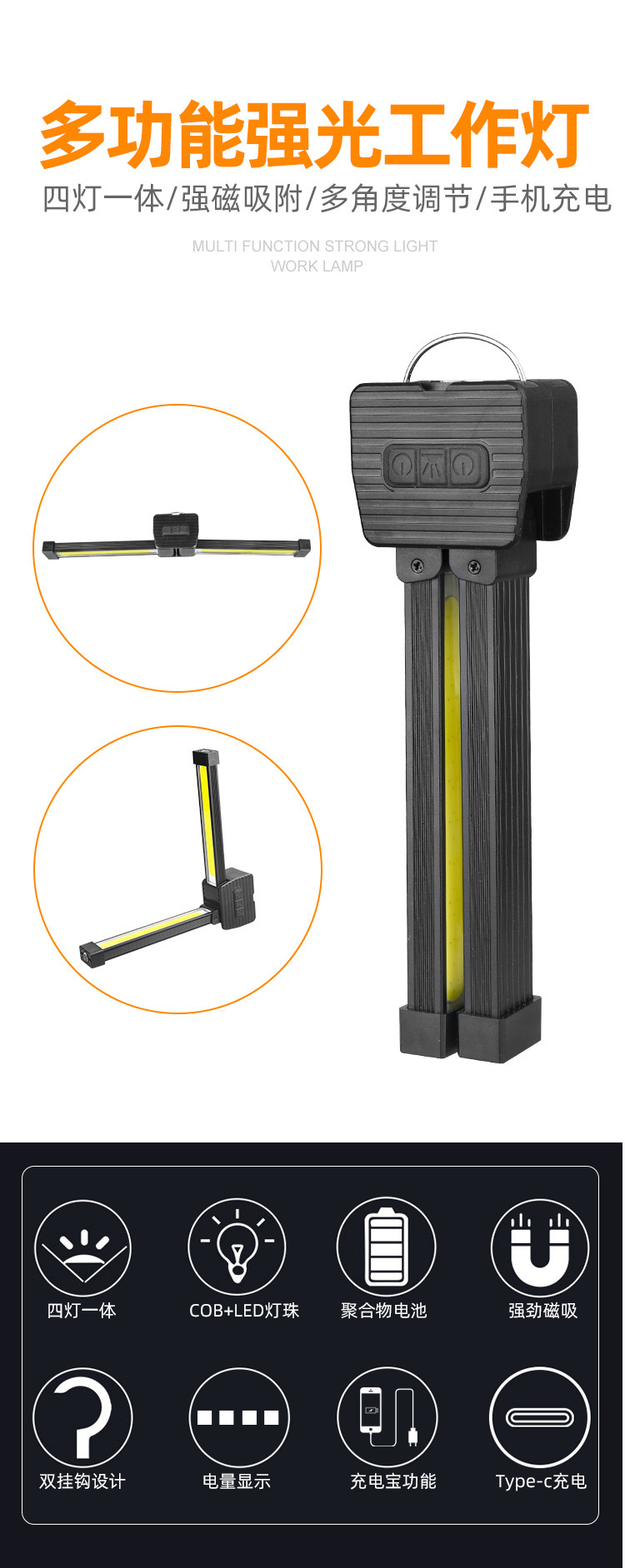 야외 알루미늄 합금 손전등 충전식 휴대용 접이식 자동 수리 램프 마그네틱 후크 캠핑 비상 손전등