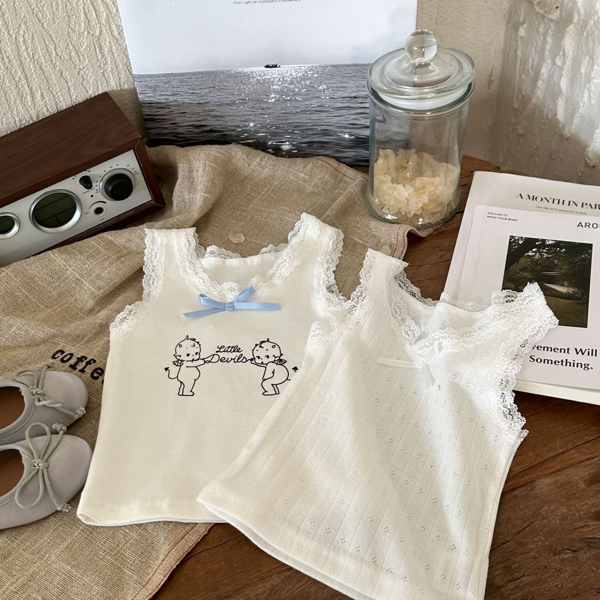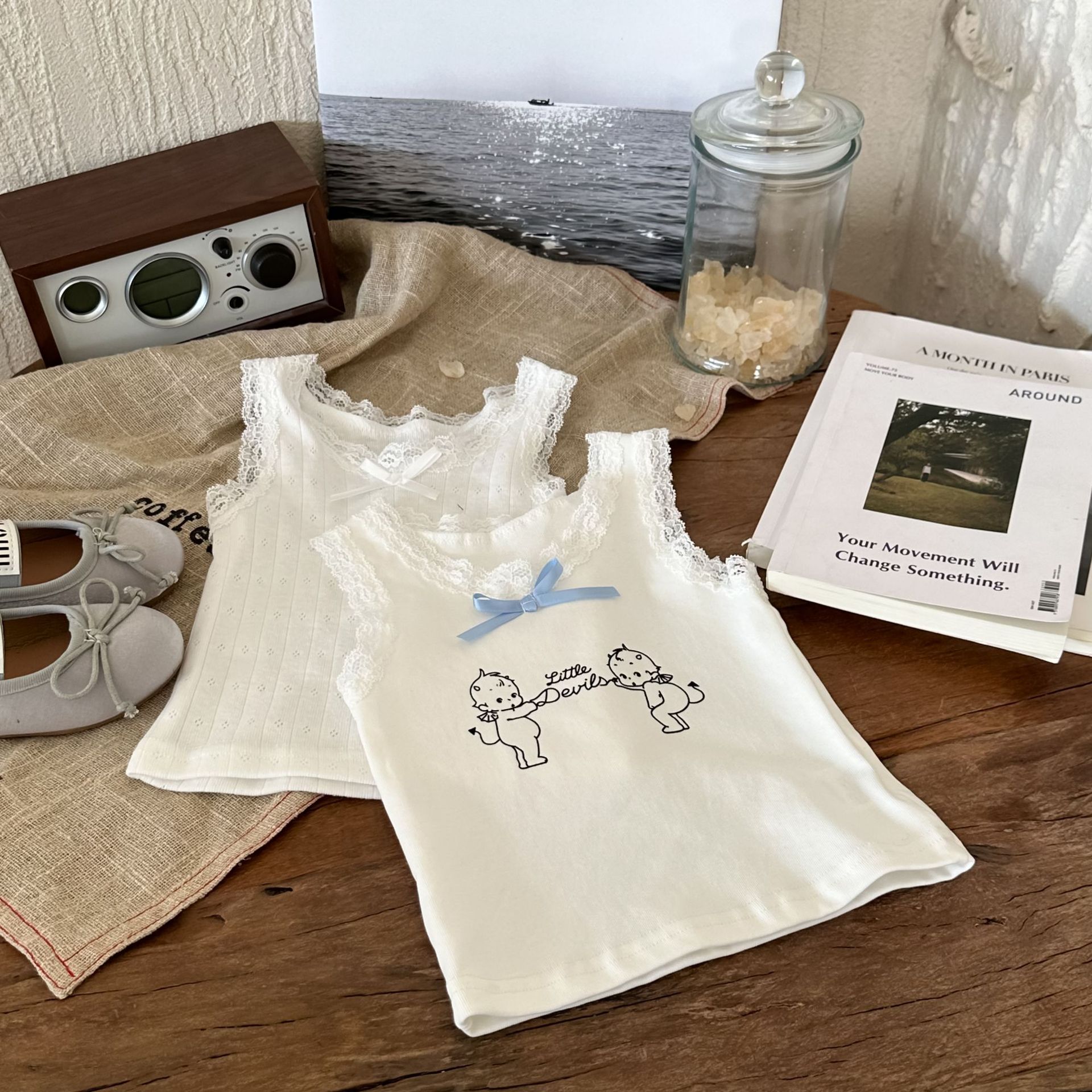여자 조끼 여름 새로운 레이스 입체 활 레이스 다목적 탑 어린이 달콤한 서스펜더 트렌드