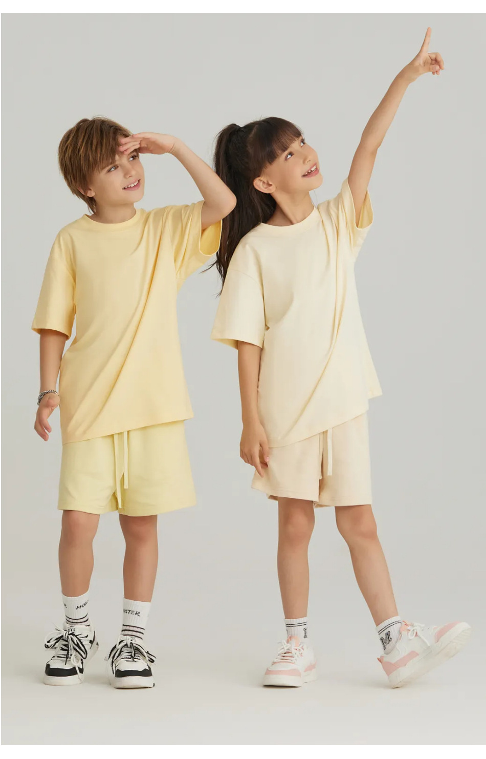 LVLV 아동복 | 2025 여름 트렌드 브랜드 바지아 컬러 매칭 아동복 반팔 중대형 아동용 220G 속건성 시원한 스포츠 티셔츠
