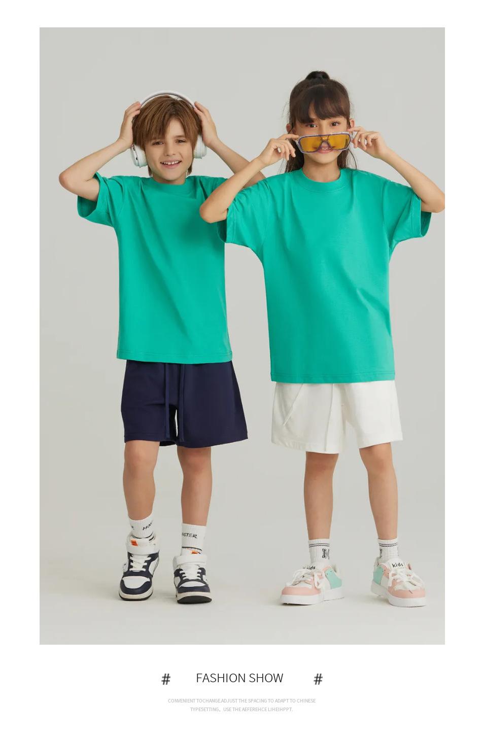 LVLV 아동복 | 2025 여름 트렌드 브랜드 바지아 컬러 매칭 아동복 반팔 중대형 아동용 220G 속건성 시원한 스포츠 티셔츠스토어 가기