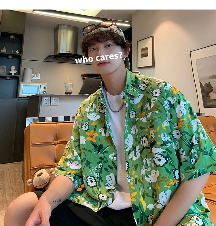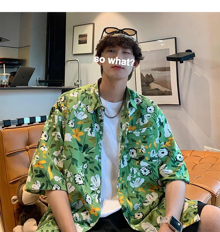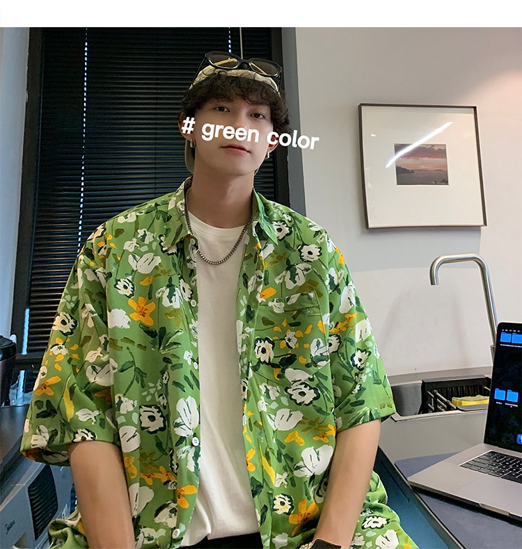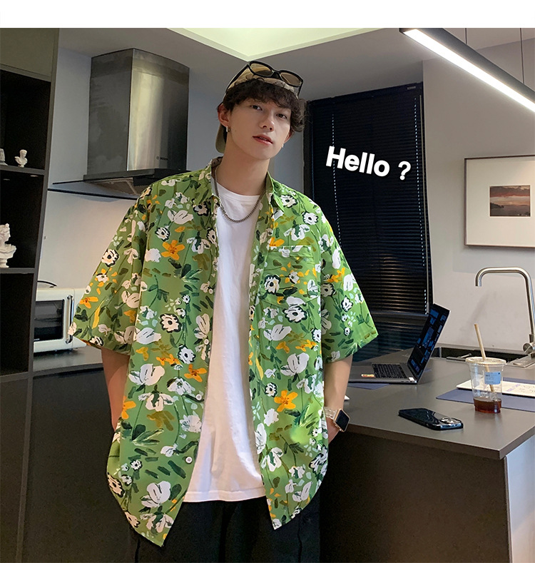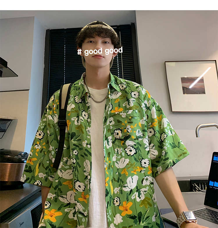 꽃 셔츠 남자의 반소매 여름 얇은 미국 스타일 트렌디 브랜드 느슨한 플러스 사이즈 캐주얼 올 매치 지방 남자의 반소매 셔츠 재킷스토어 가기