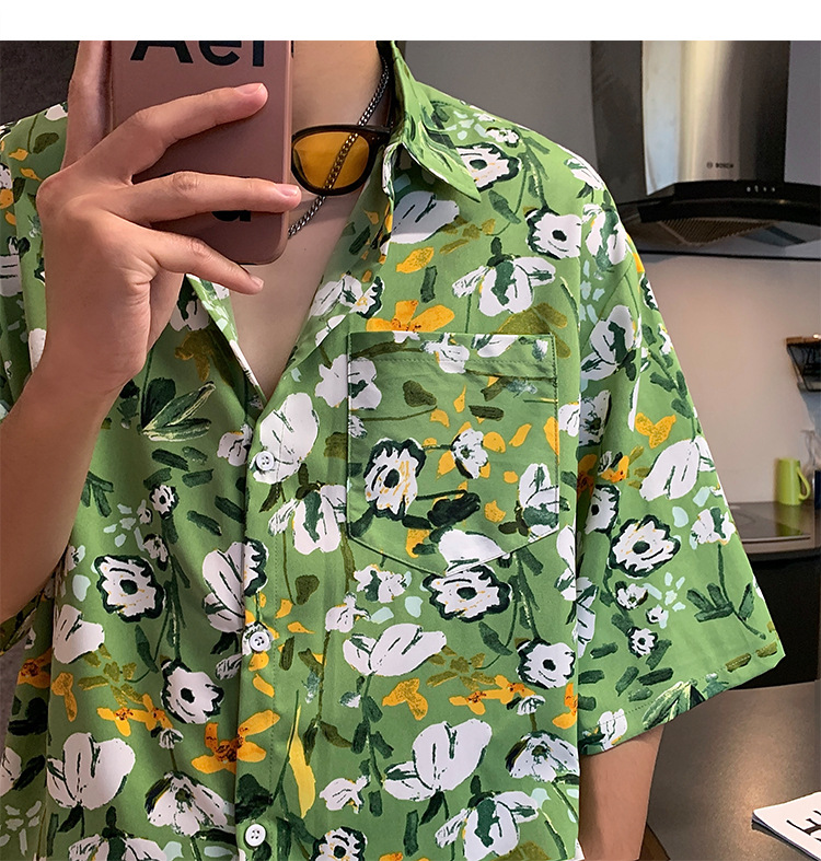 꽃 셔츠 남자의 반소매 여름 얇은 미국 스타일 트렌디 브랜드 느슨한 플러스 사이즈 캐주얼 올 매치 지방 남자의 반소매 셔츠 재킷